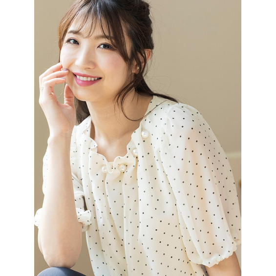 カットソーに前身ごろのみ透け感のある柔らかなドットを重ねたブラウスのように見える涼し気な印象のカットソー。
