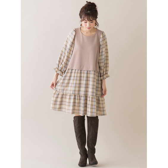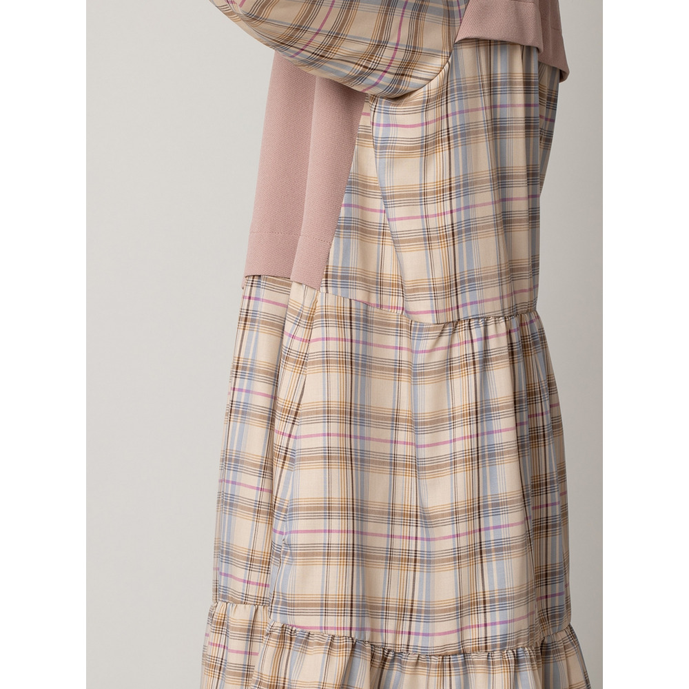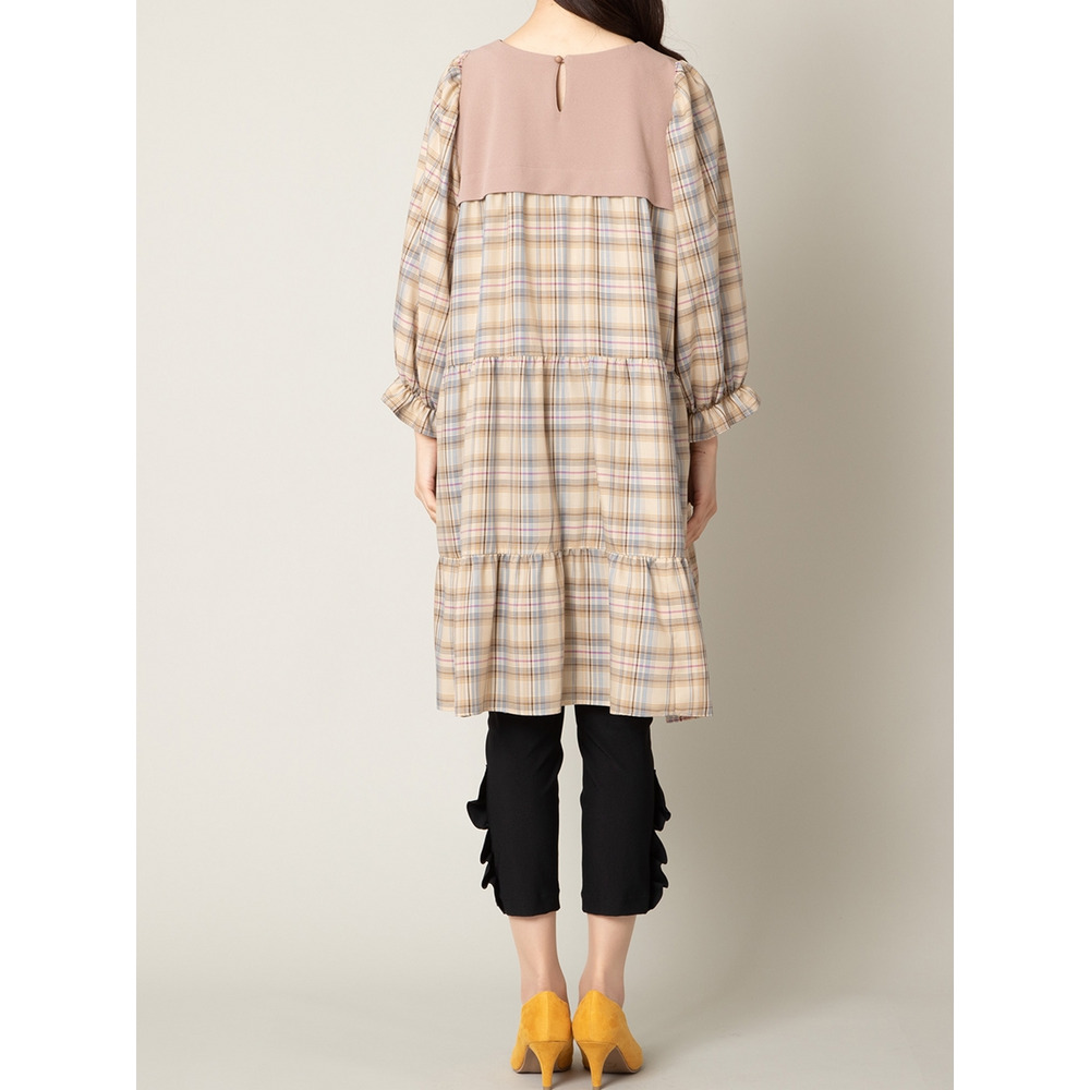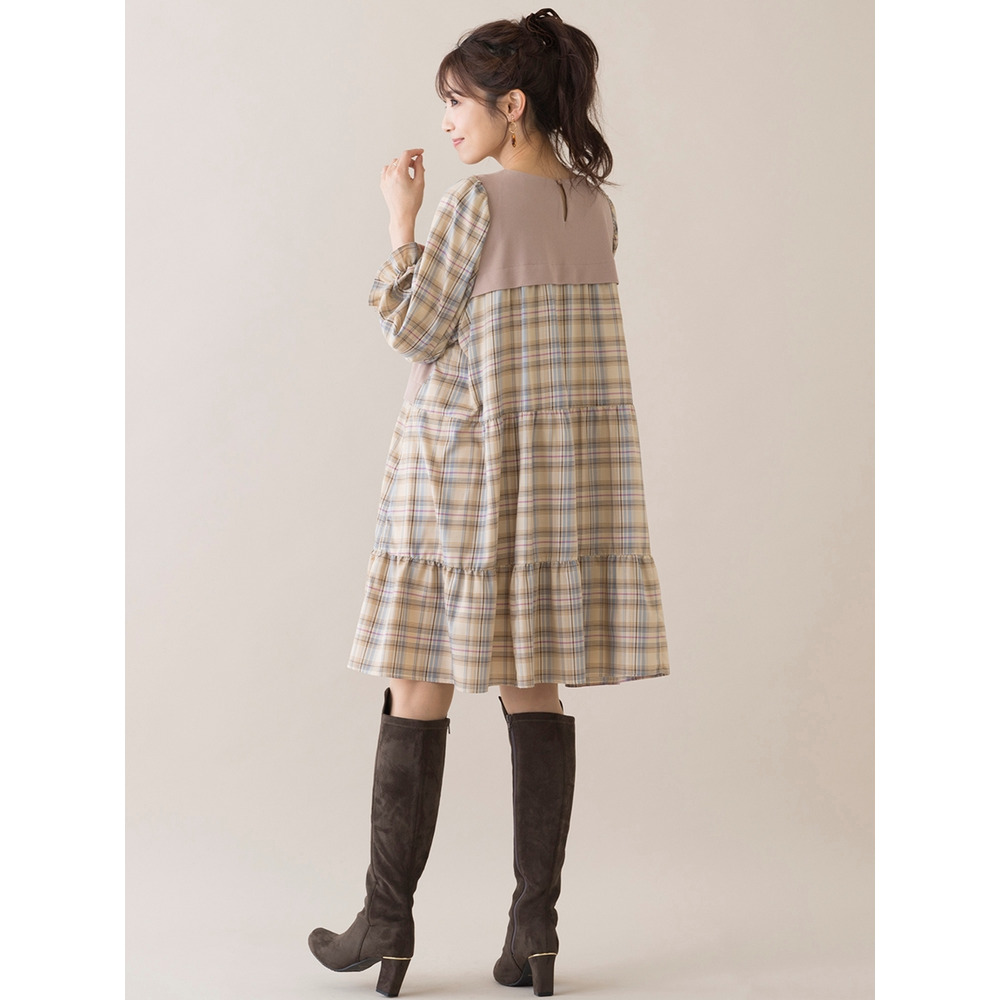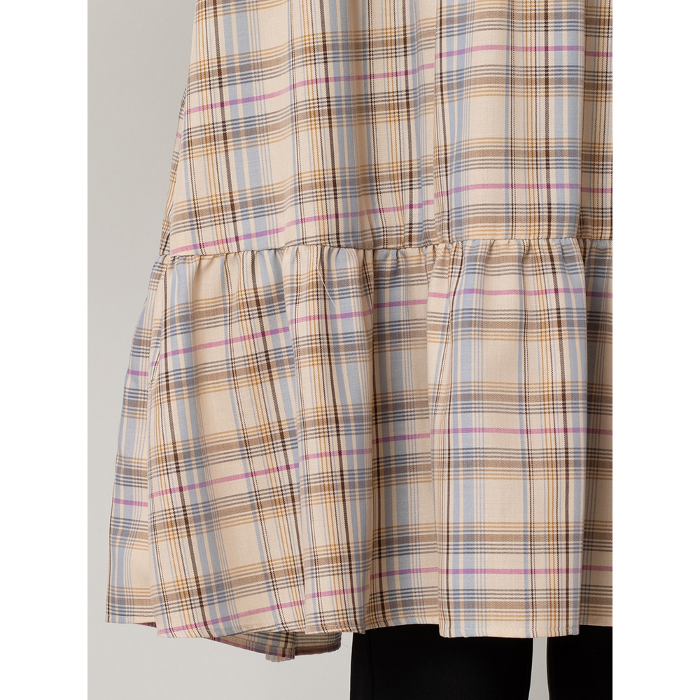 たっぷりとボリュームを持たせたティアード切替は秋らしいチェック柄でレイヤード風のデザインに。