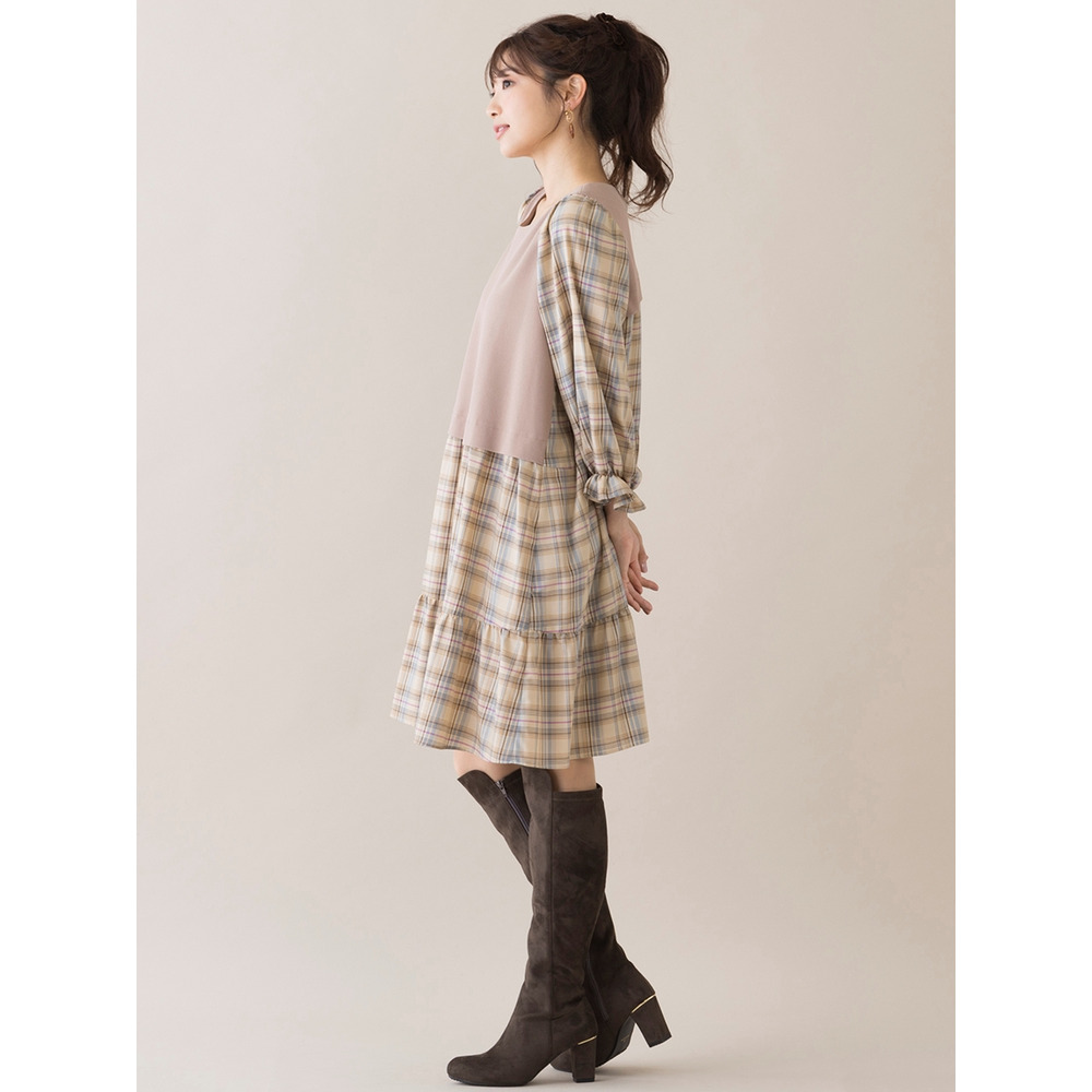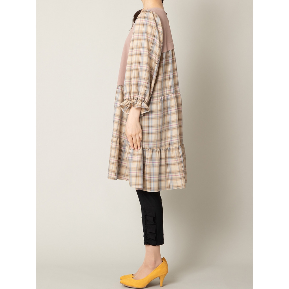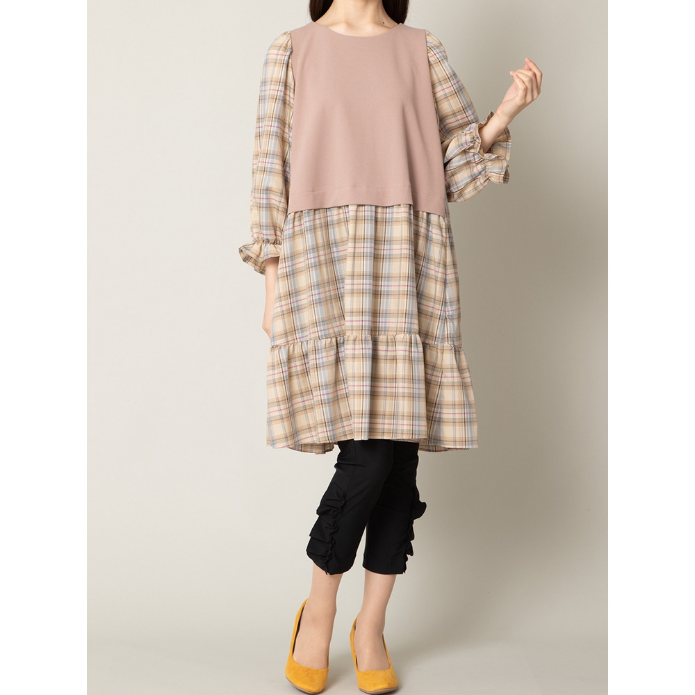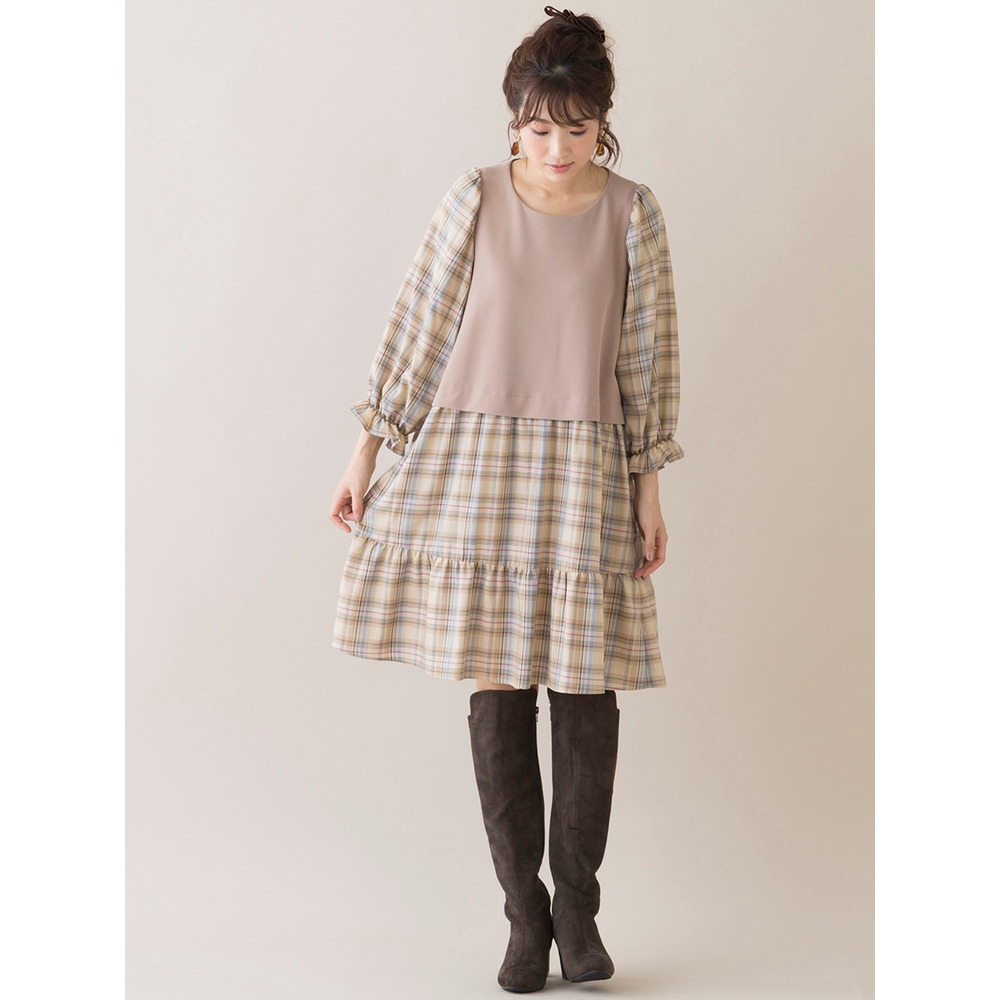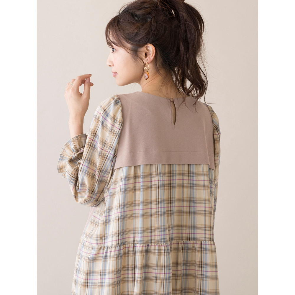たっぷりとボリュームを持たせたティアード切替は秋らしいチェック柄でレイヤード風のデザインに。