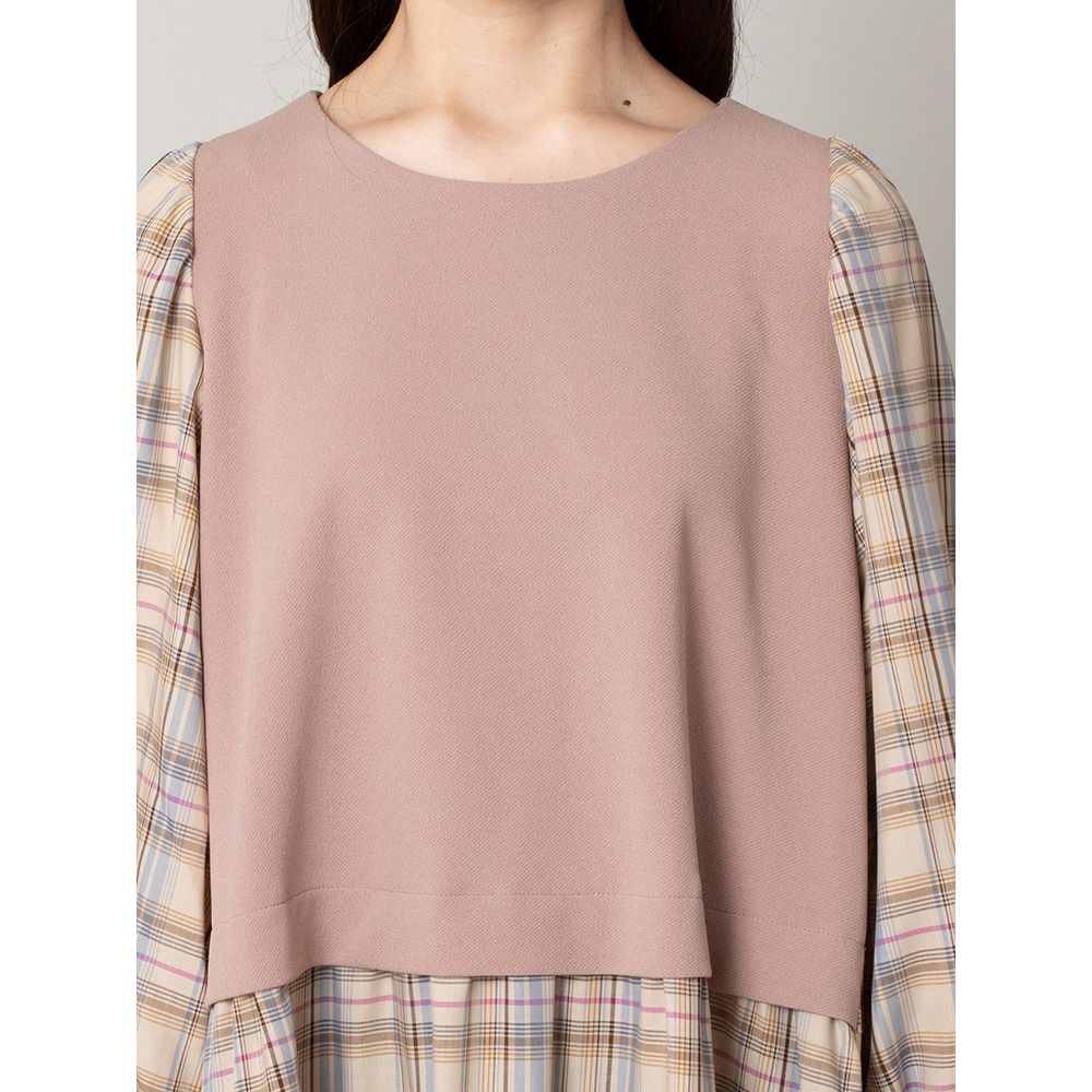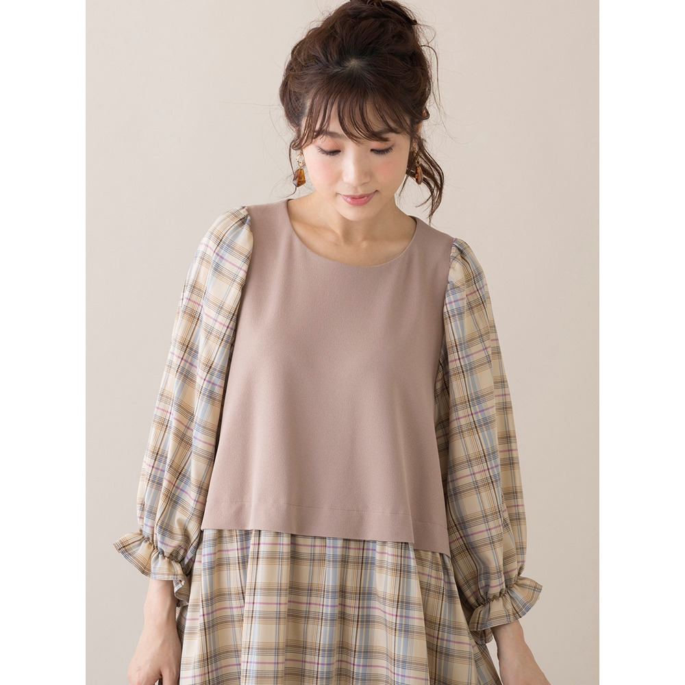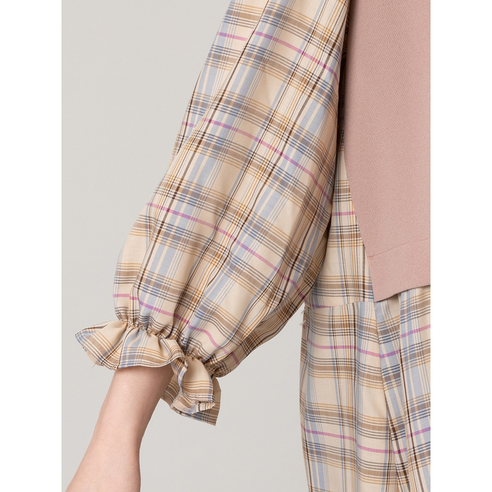 ふんわり広がるパフスリーブにドッキングデザインが今っぽいチェックのチュニック。