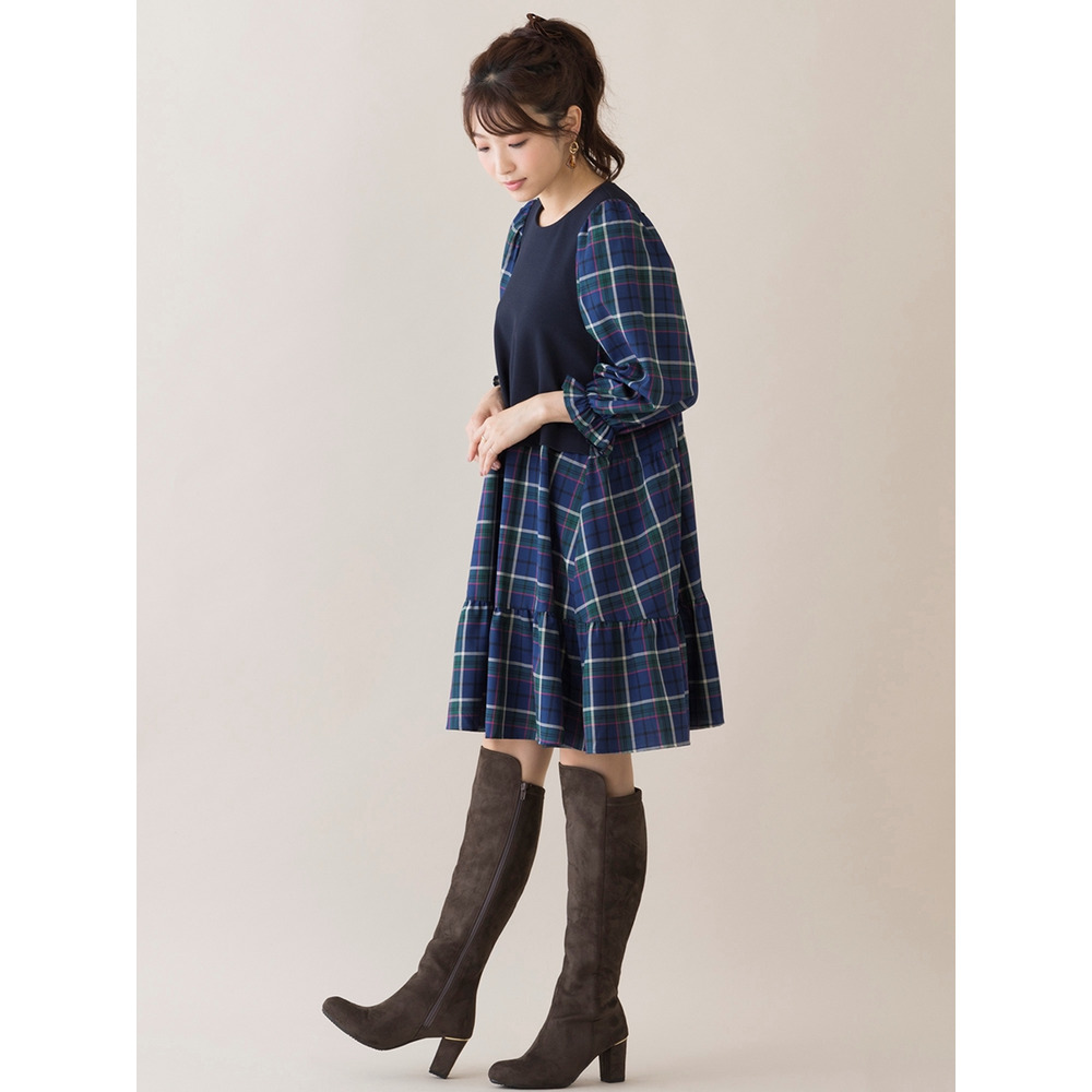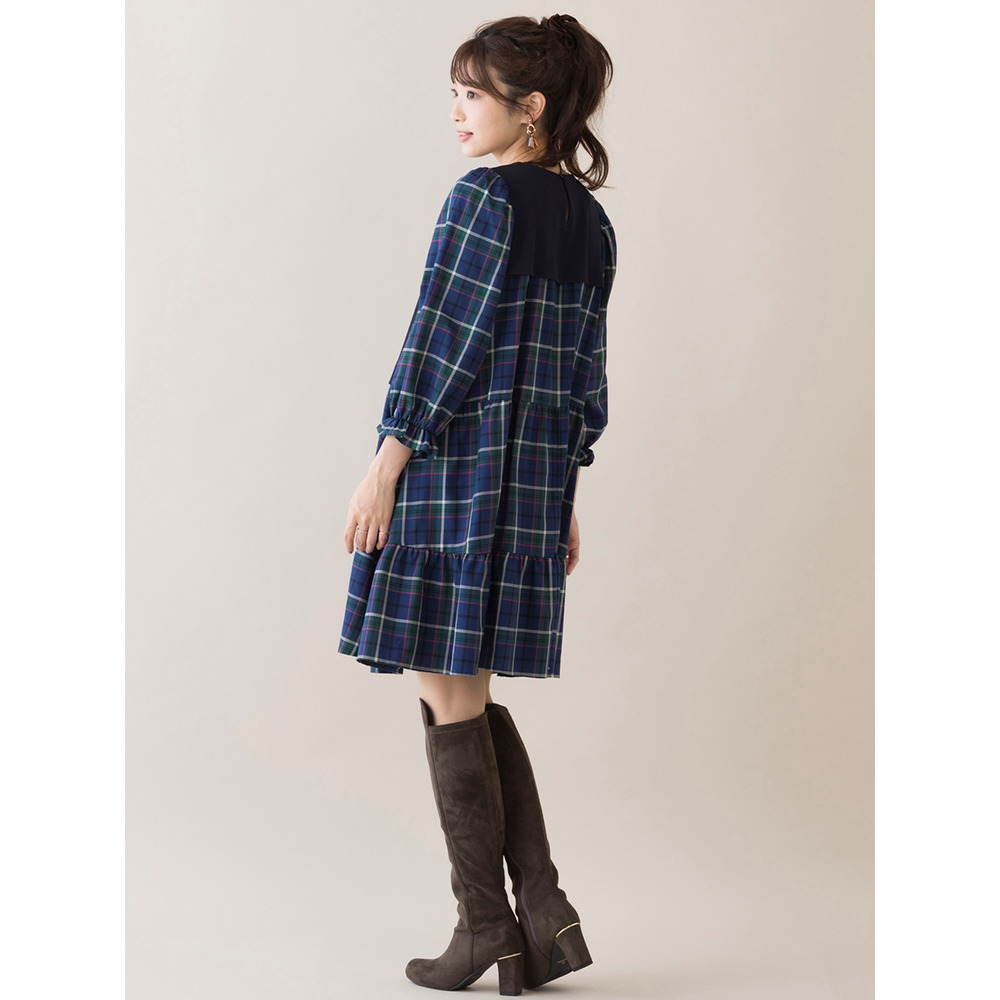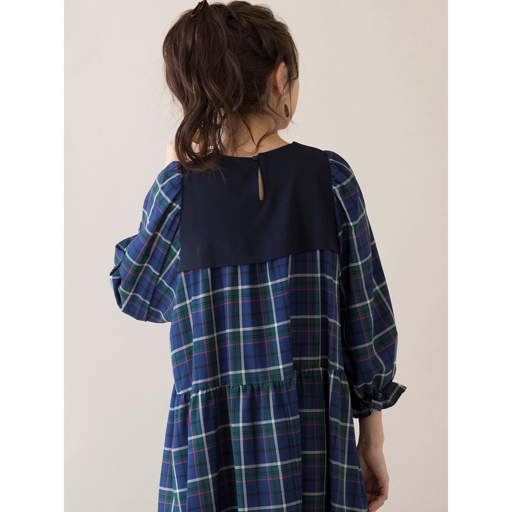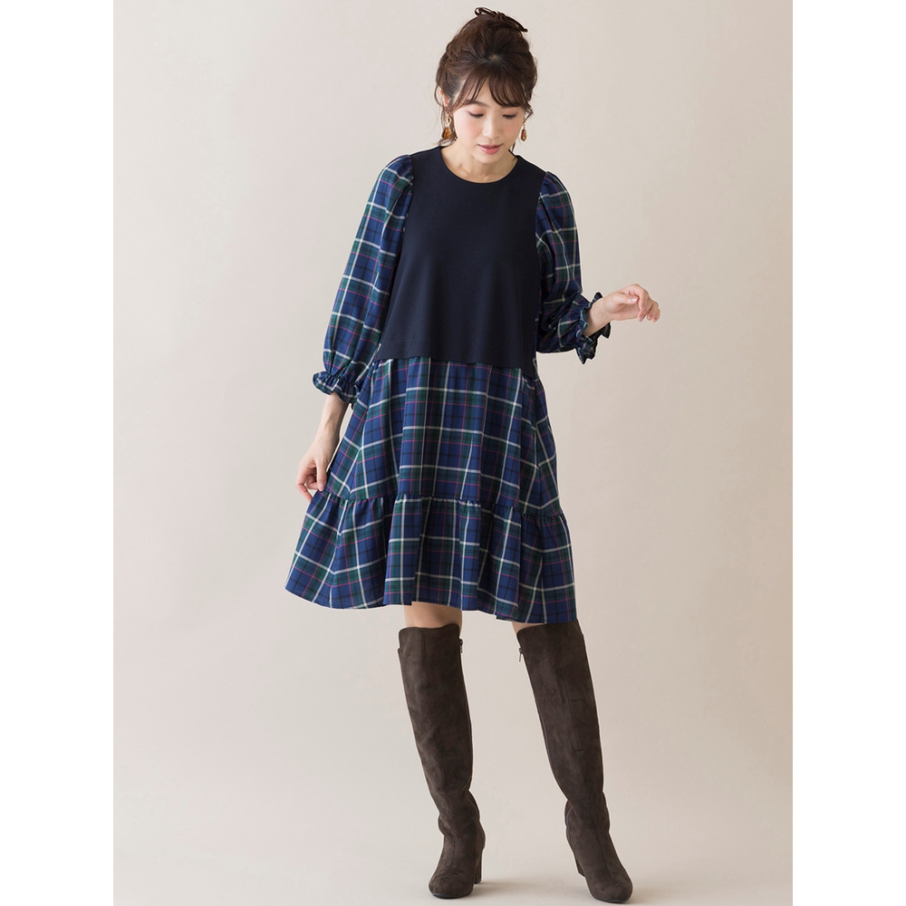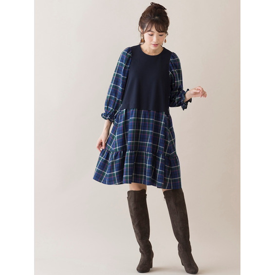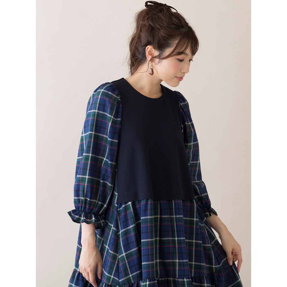 たっぷりとボリュームを持たせたティアード切替は秋らしいチェック柄でレイヤード風のデザインに。