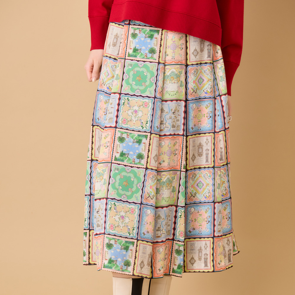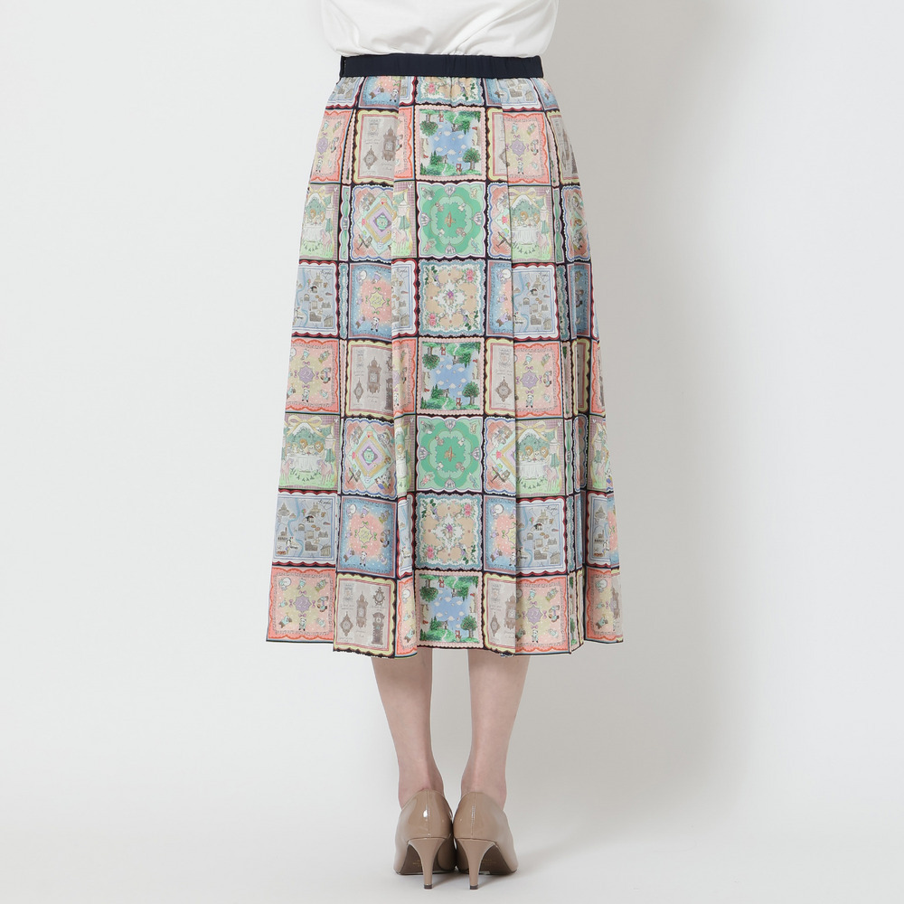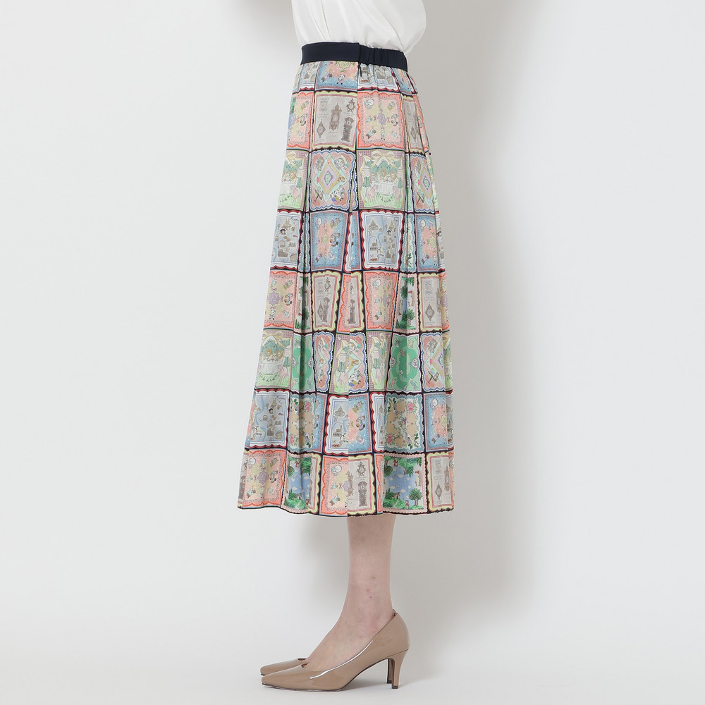 いろんなテイストの22fabricらしいデザインが、パッチワークのように並んだフレアスカート。