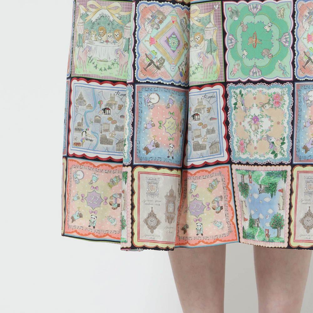 松浦由起江氏プロデュースのテキスタイルブランド『22fabric』の9th collection、ハンカチコレクター柄のフレアスカート。