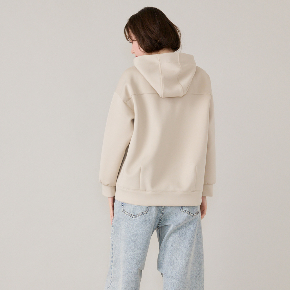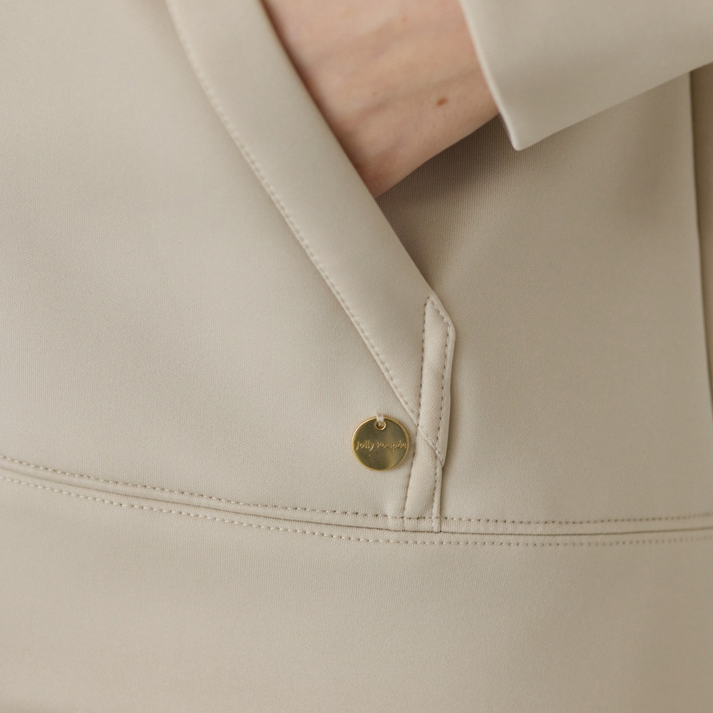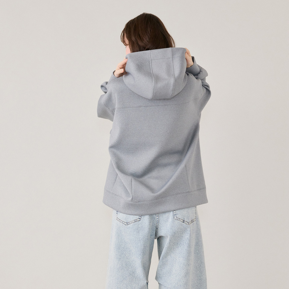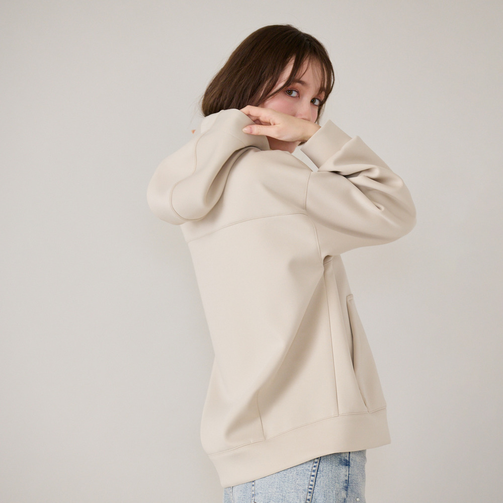 後ろ身頃の裾にふんわりと丸いシルエットを作れるようにタックを入れ、袖にも丸みを持たせたフォルムで着るだけでニュアンスの出るシルエットに。