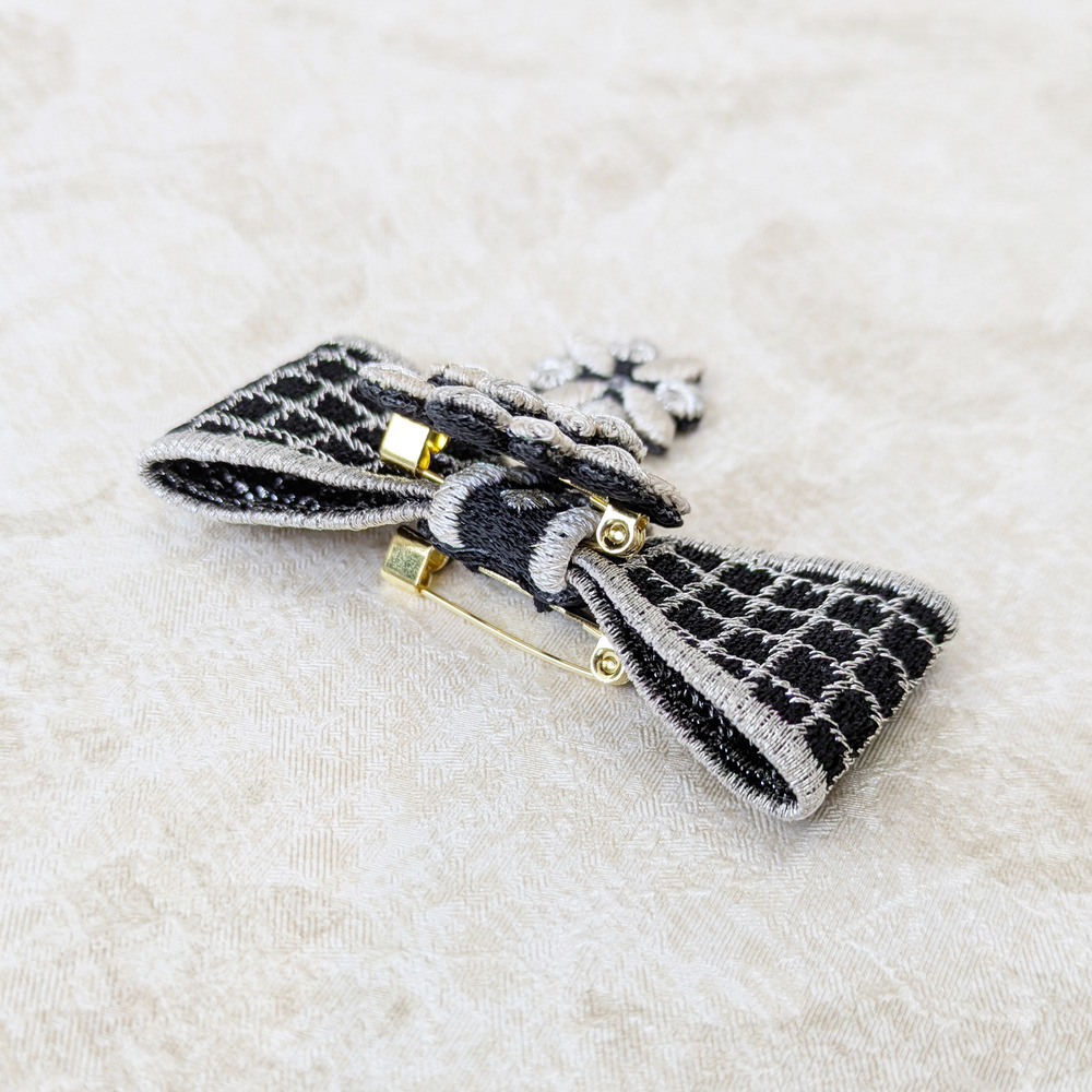 パーツを接着剤で貼り付けたブローチとは違い、刺繍を駆使した滑らかな凹凸と、刺繍ならではの軽さも魅力です。