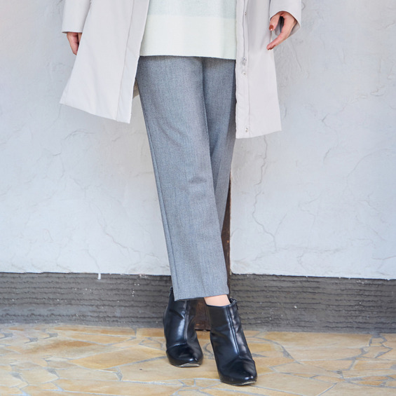 吸湿発熱の機能が秋冬に嬉しい、ソフトな風合いの素材を使用したパンツは、裏起毛であたたかい。