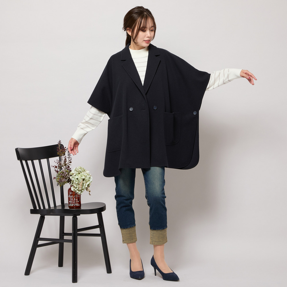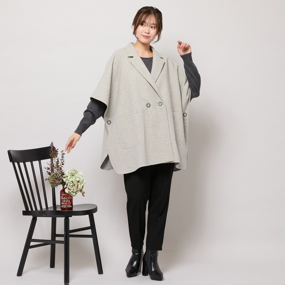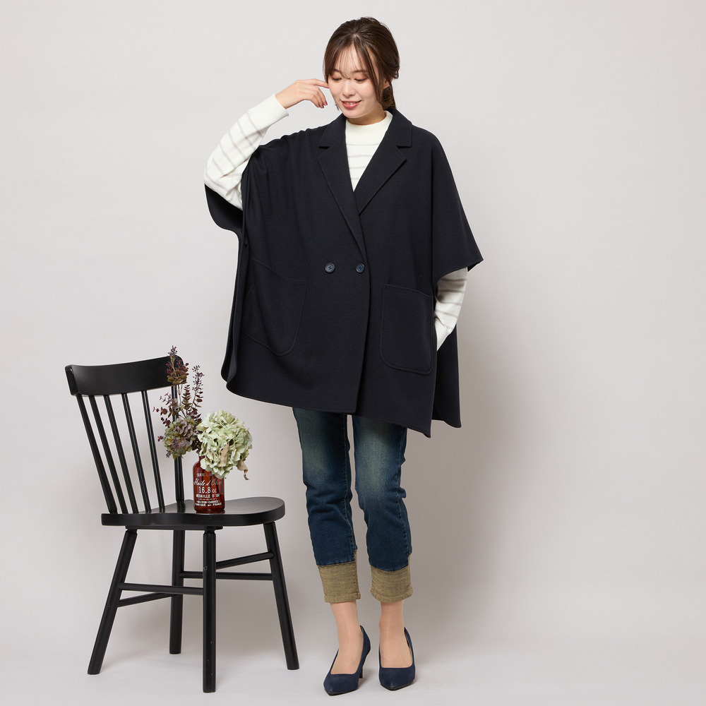 【吸湿発熱】テーラードカラー・ポンチョジャケット