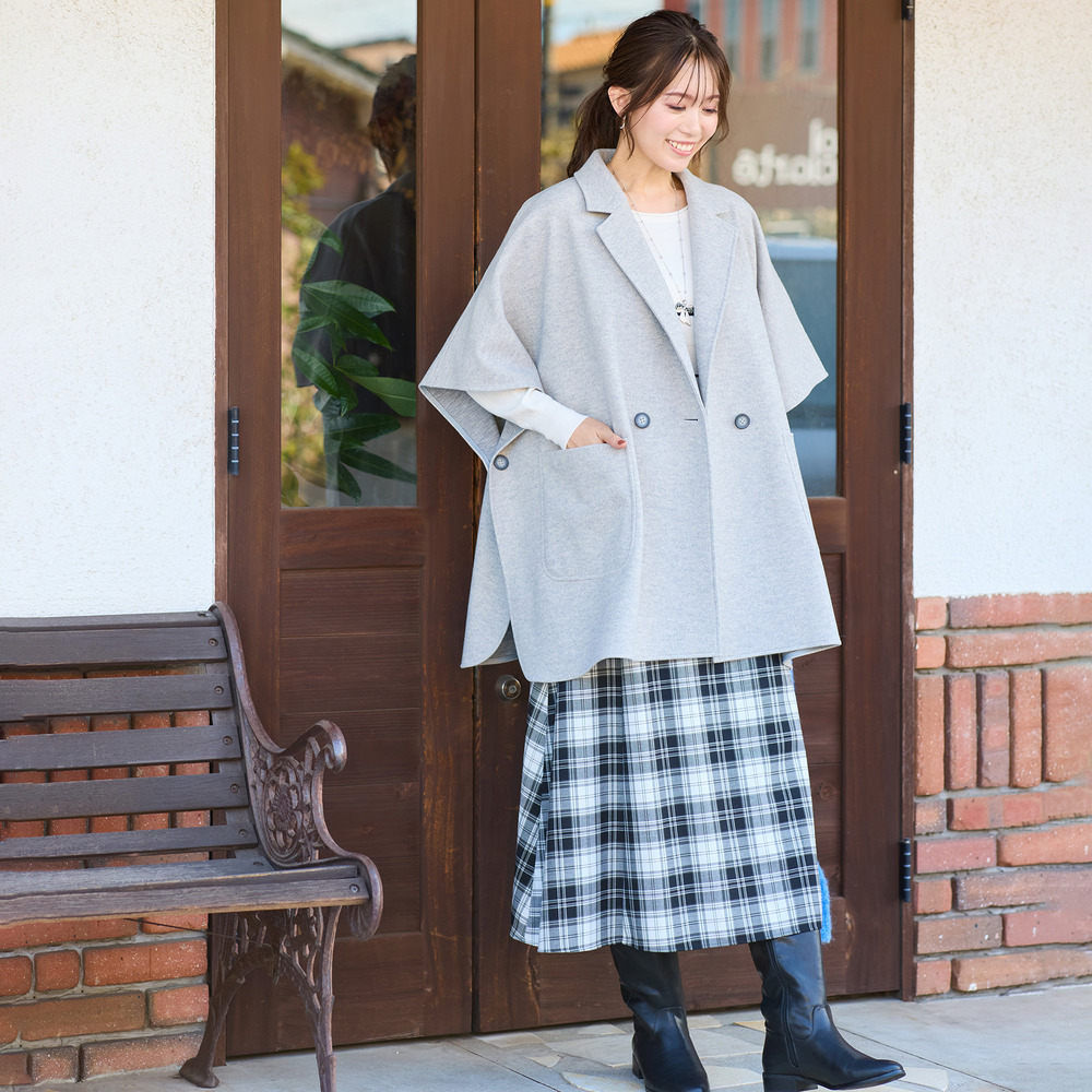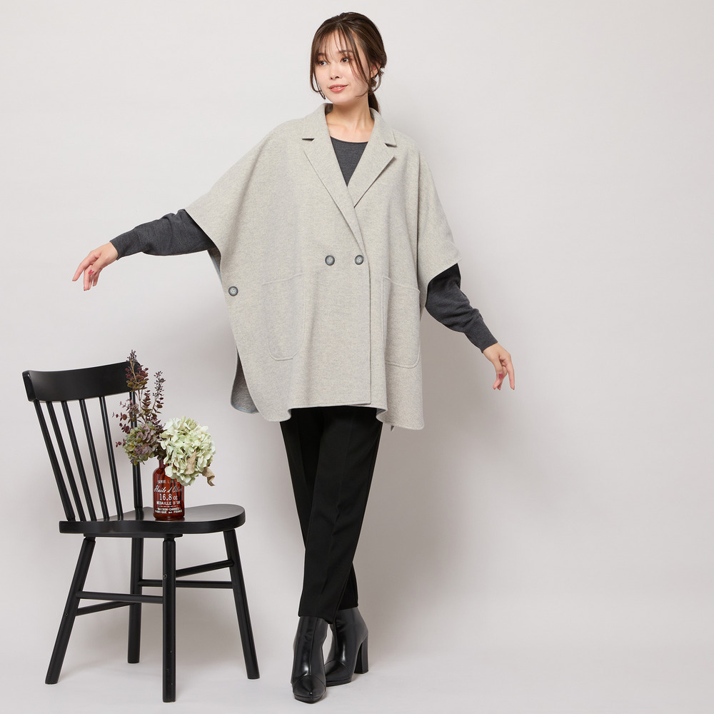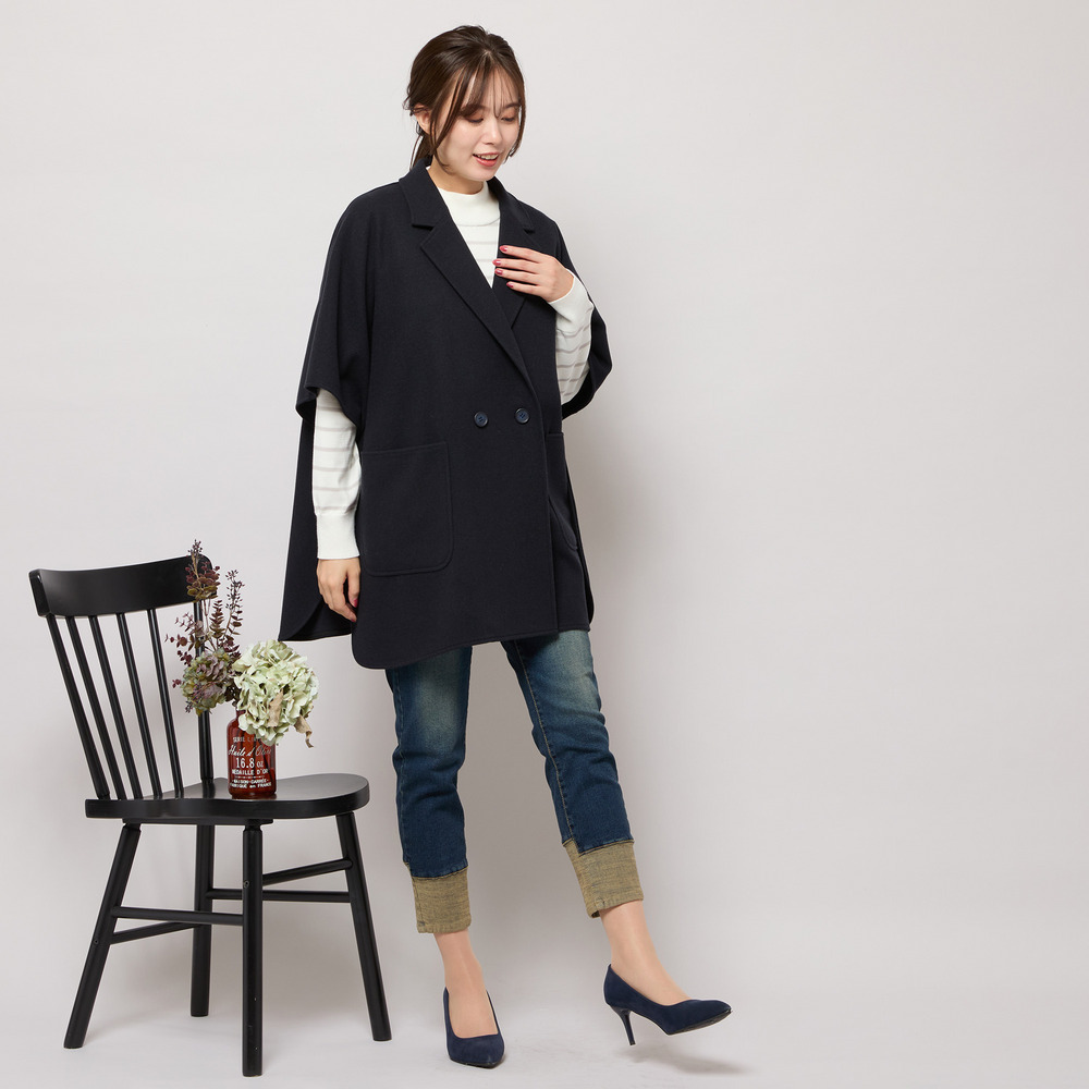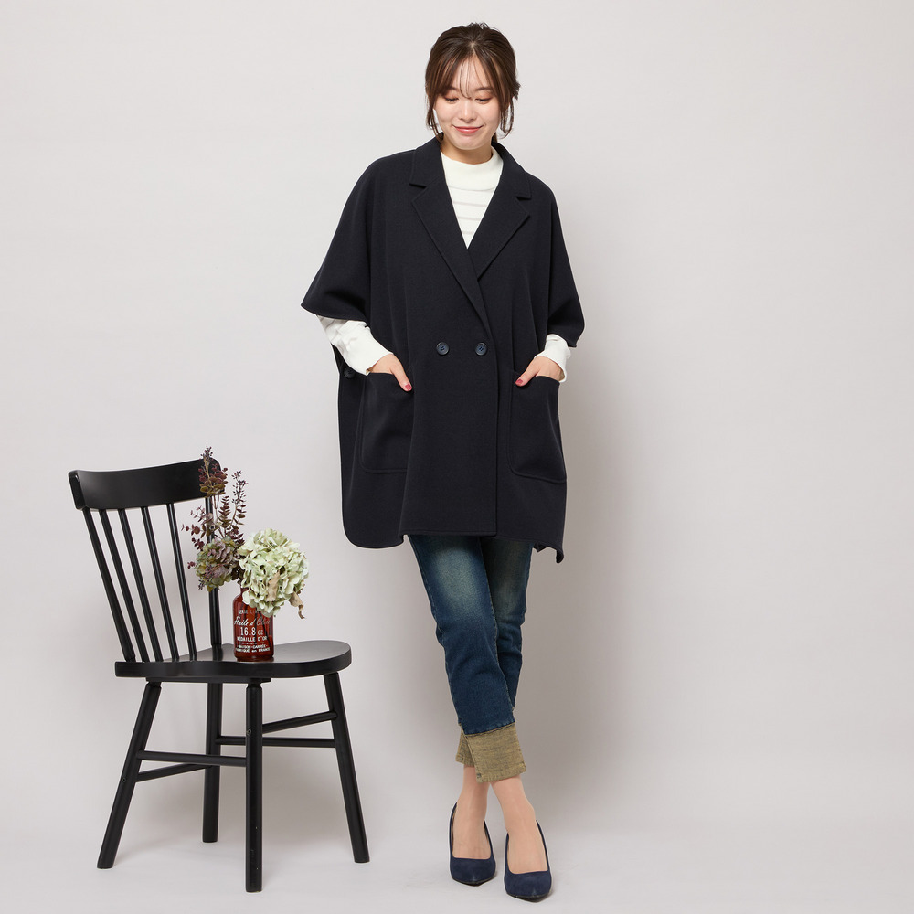 【吸湿発熱】テーラードカラー・ポンチョジャケット