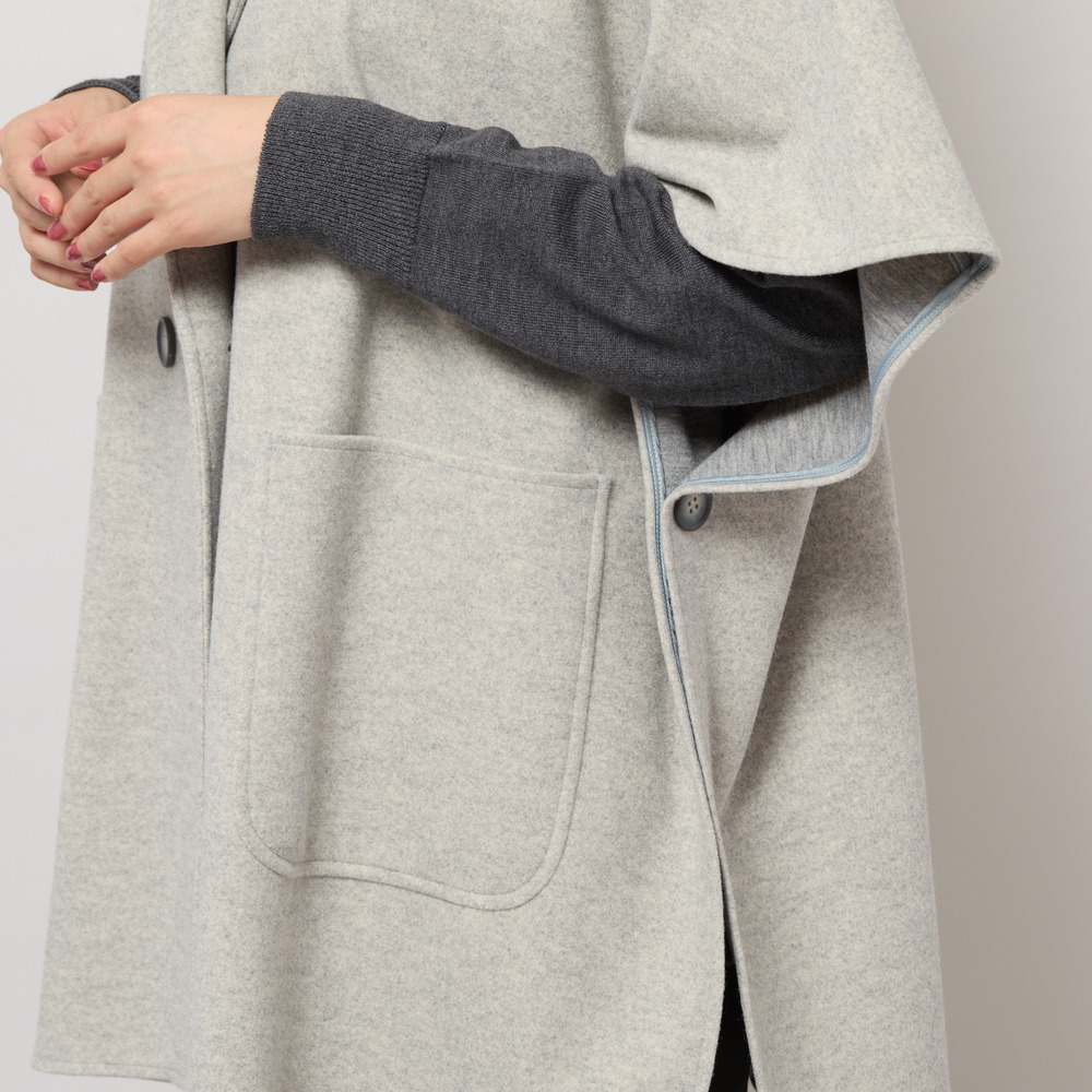 リサイクルポリエステルを使用した素材で作ったポンチョジャケット。