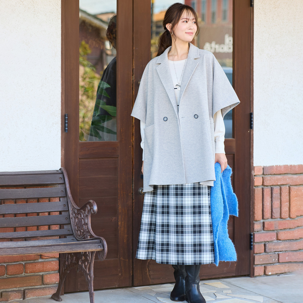 ポンチョタイプなので、どんなインナーももたつかず合わせやすい。