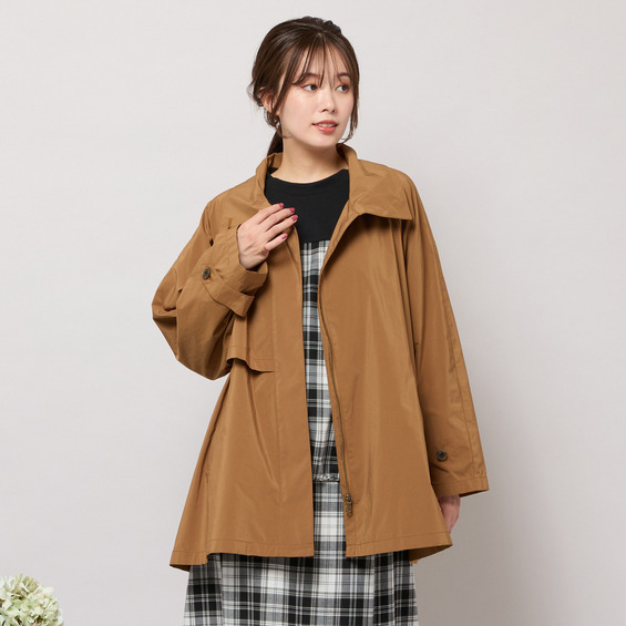 【撥水】Aラインシルエット・ラグランスリーブトレンチブルゾン