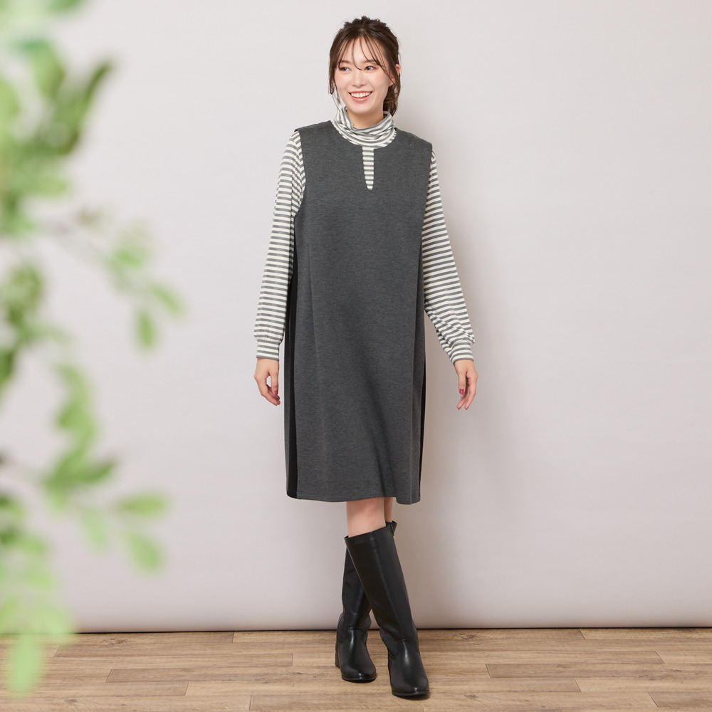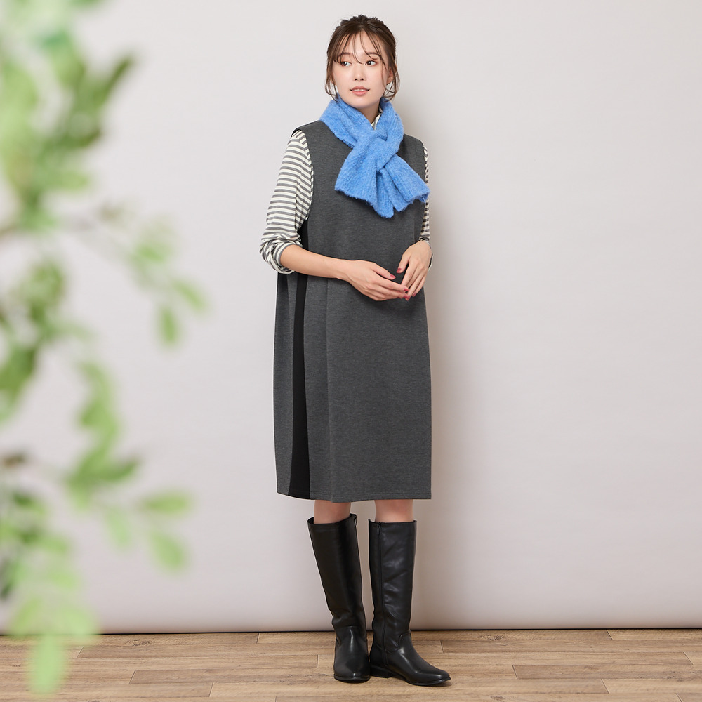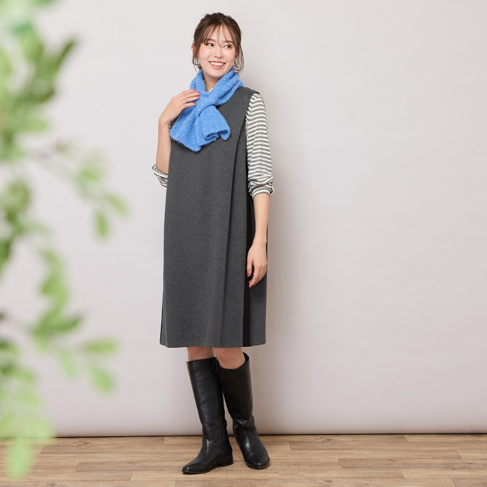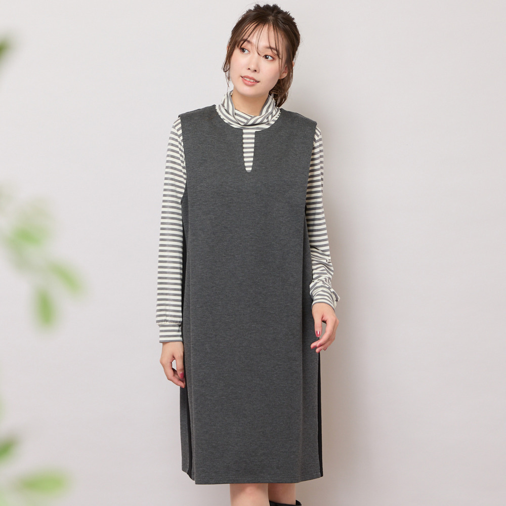 ■スッとタテ長に、着やせ効果のある、Iラインシルエットワンピース■