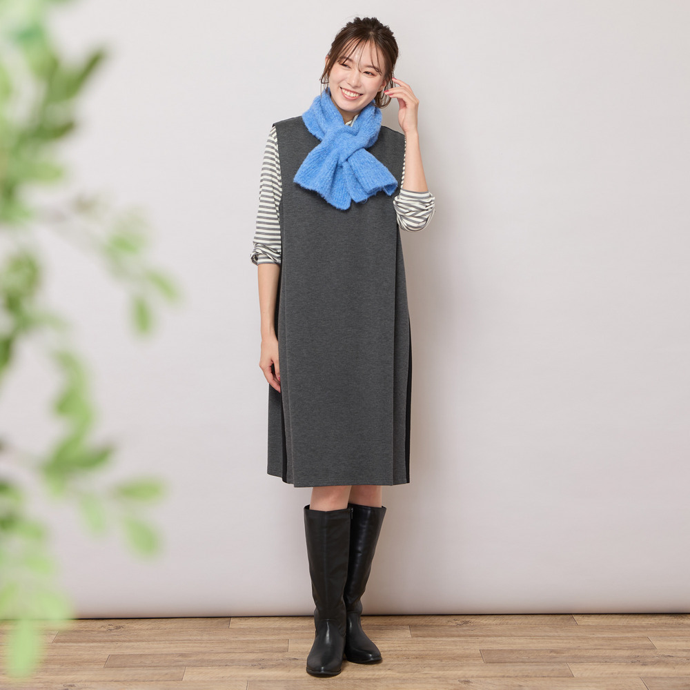 ロングブーツに合わせるとバランスも良く、大人可愛いスタイルに仕上がります。