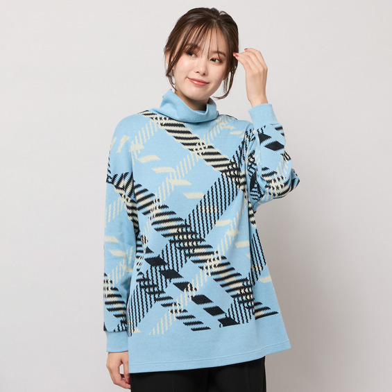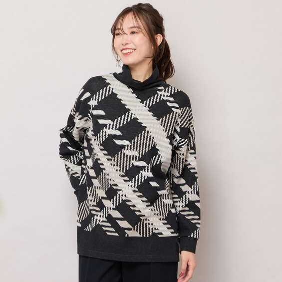 • 【手洗いOK】パネルプリントWジャカードハイネック1