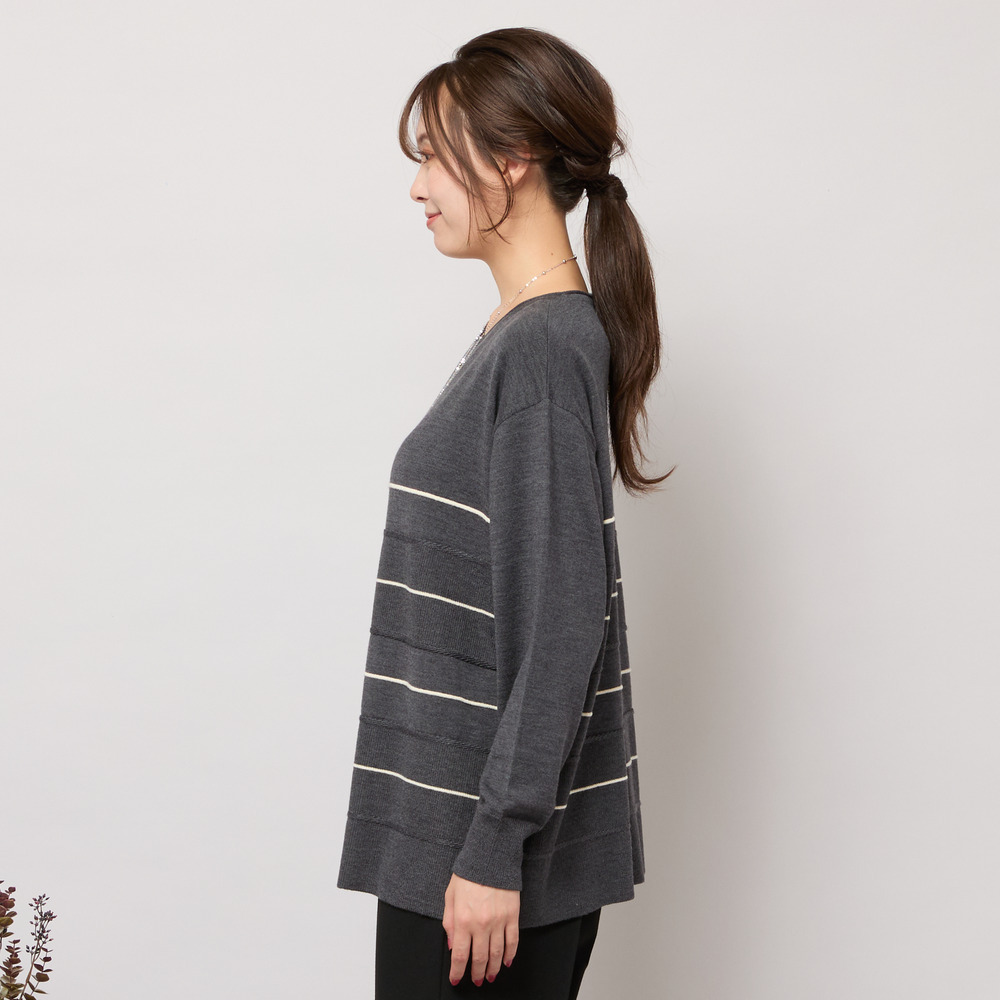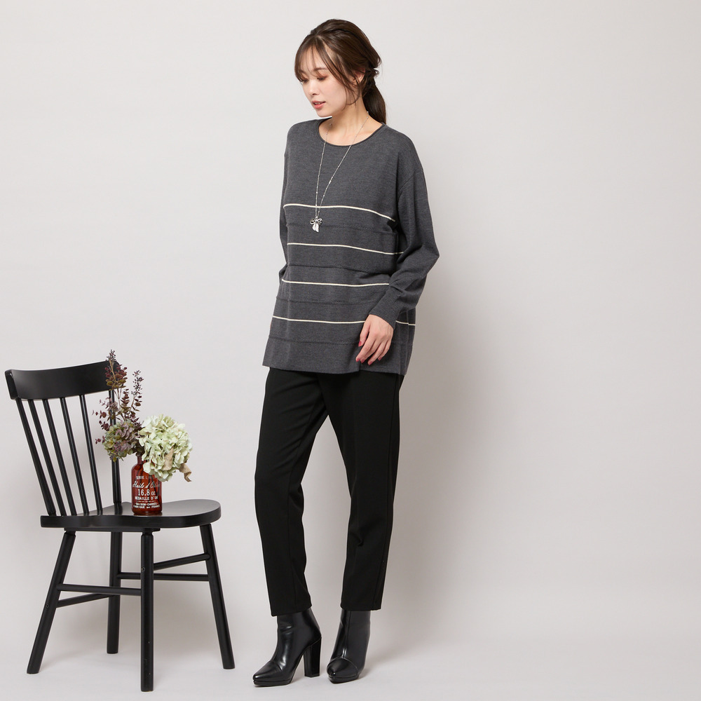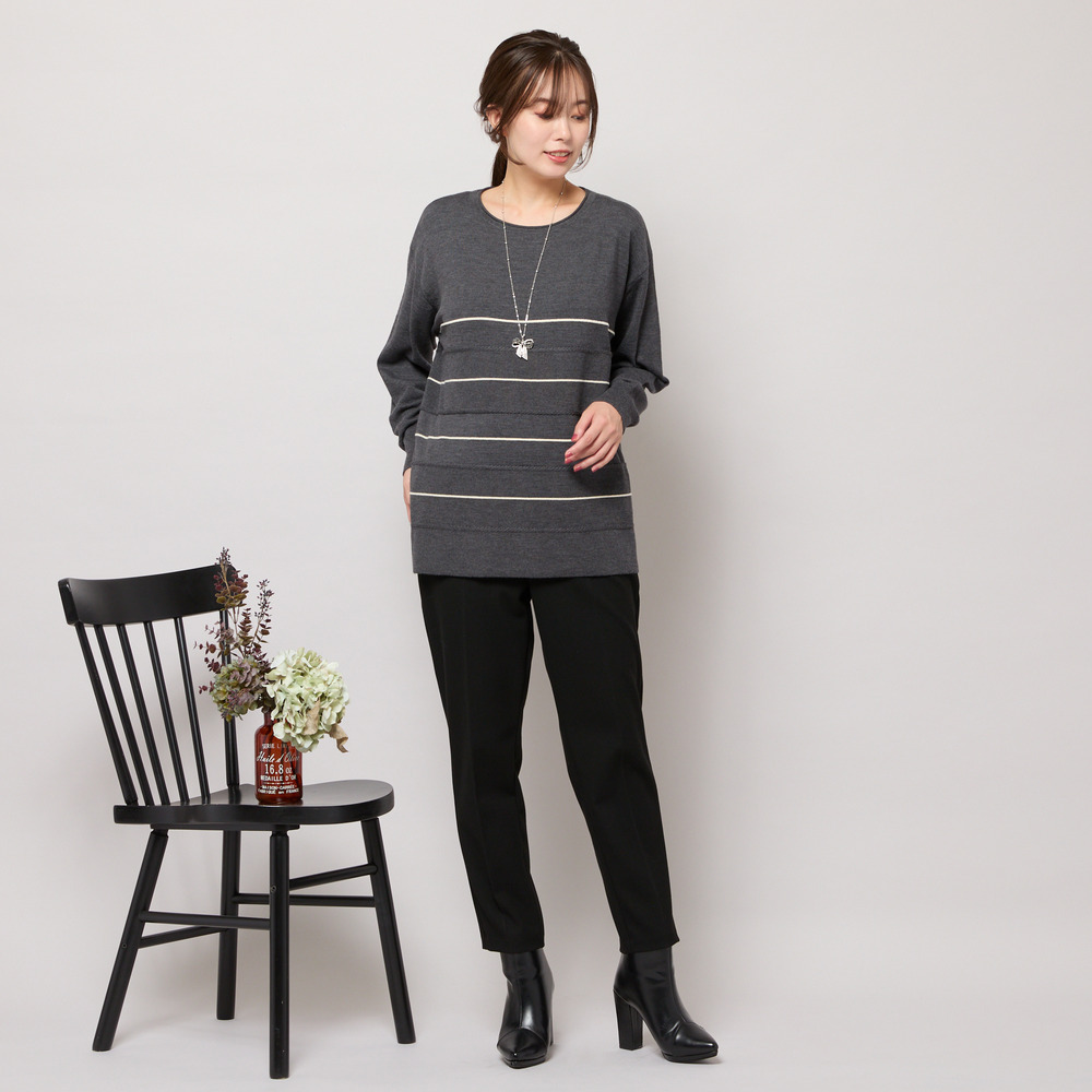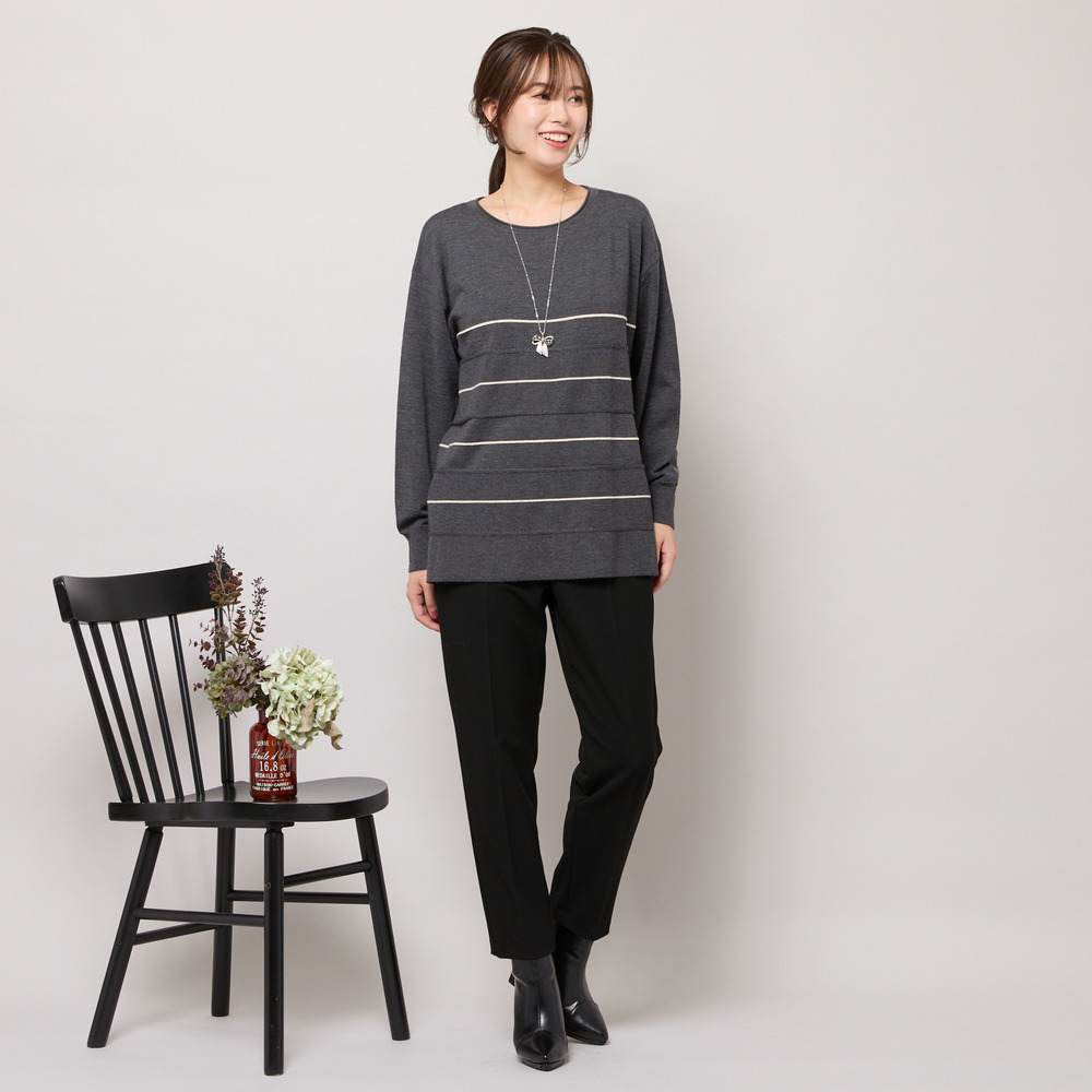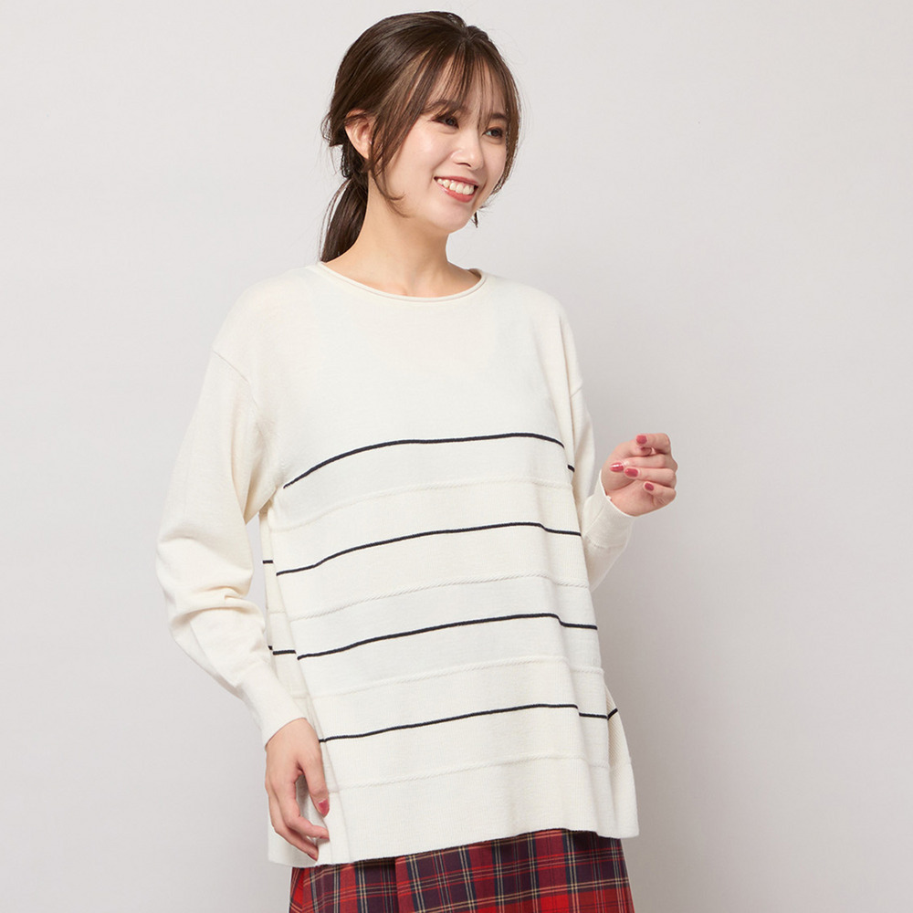 ■バイカラーのボーダー柄でバランス良く見せてくれるニットトップ■