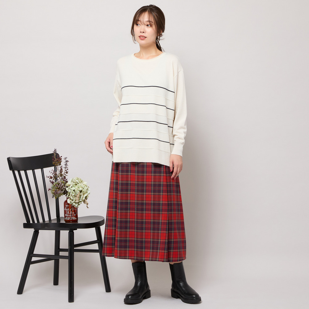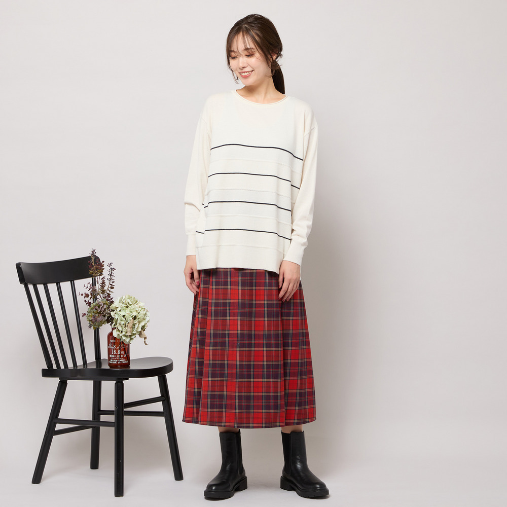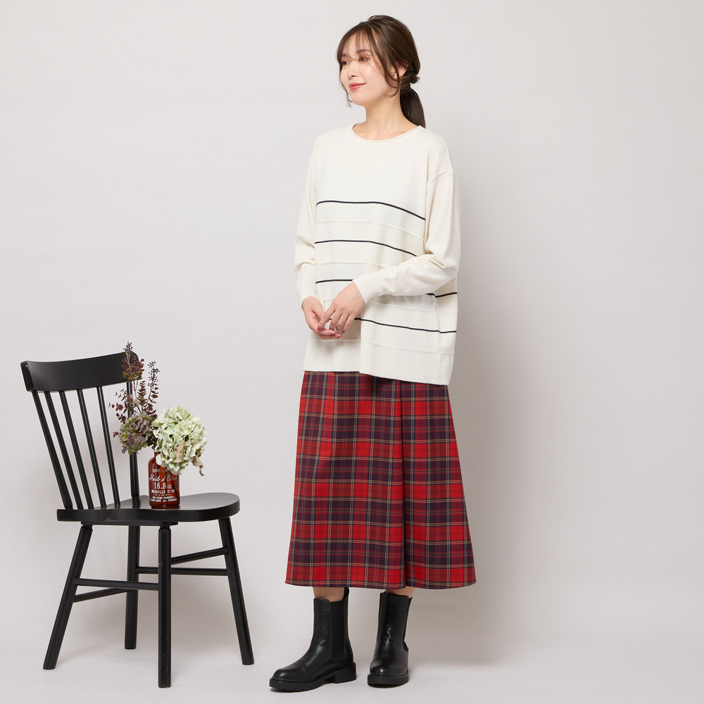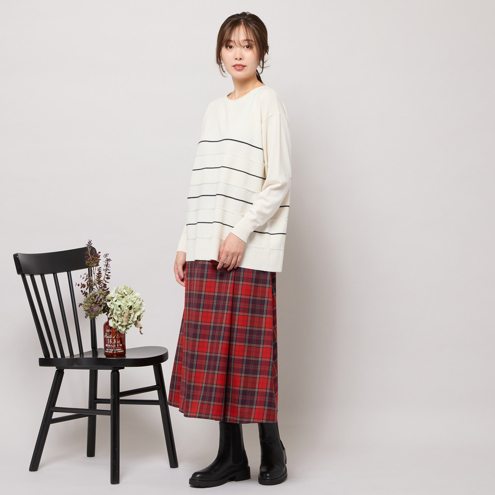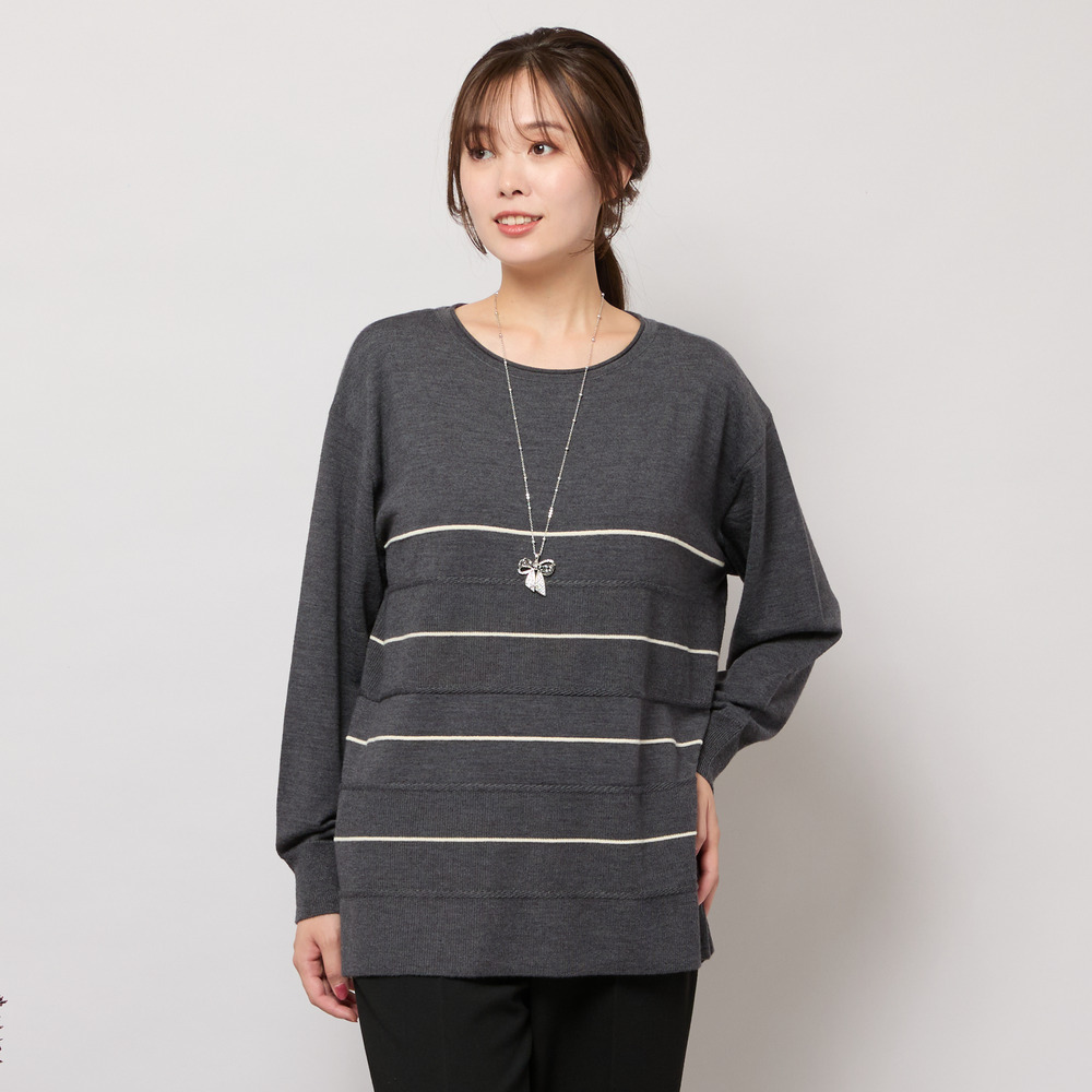 ■バイカラーのボーダー柄でバランス良く見せてくれるニットトップ■