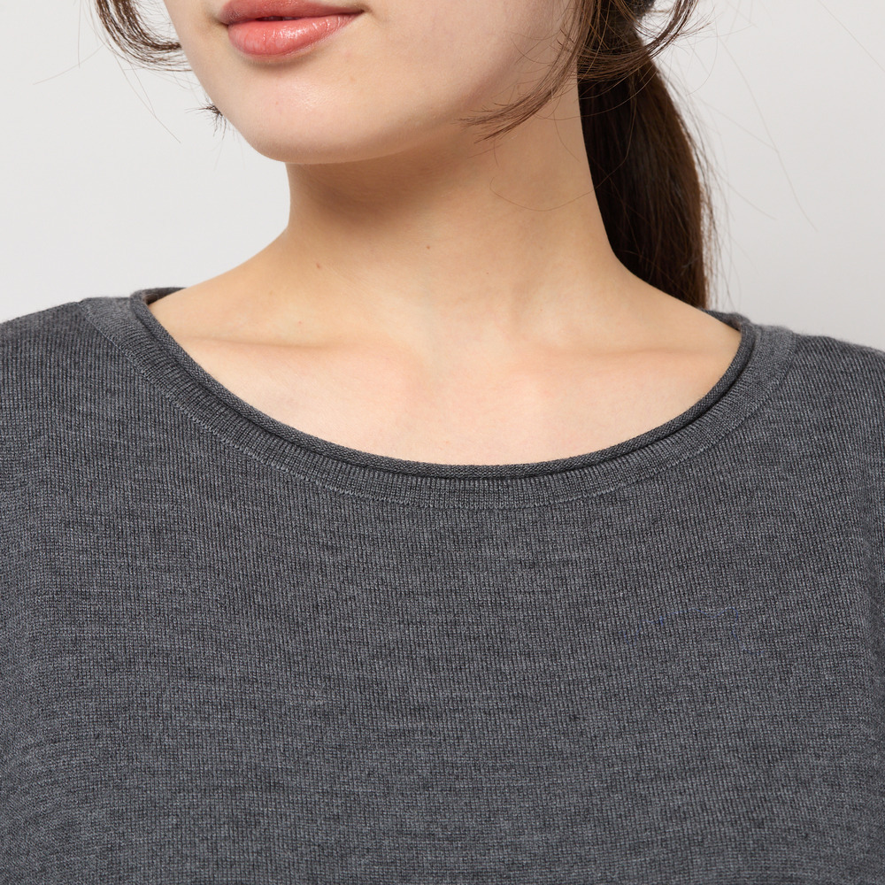 オフ、グレーの使いやすいカラー展開で、どんなアイテムとも合わせやすい1枚。