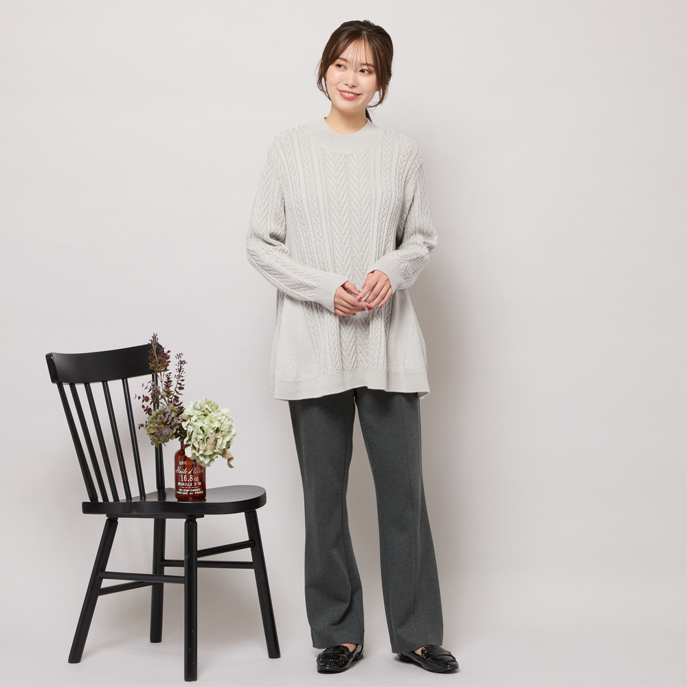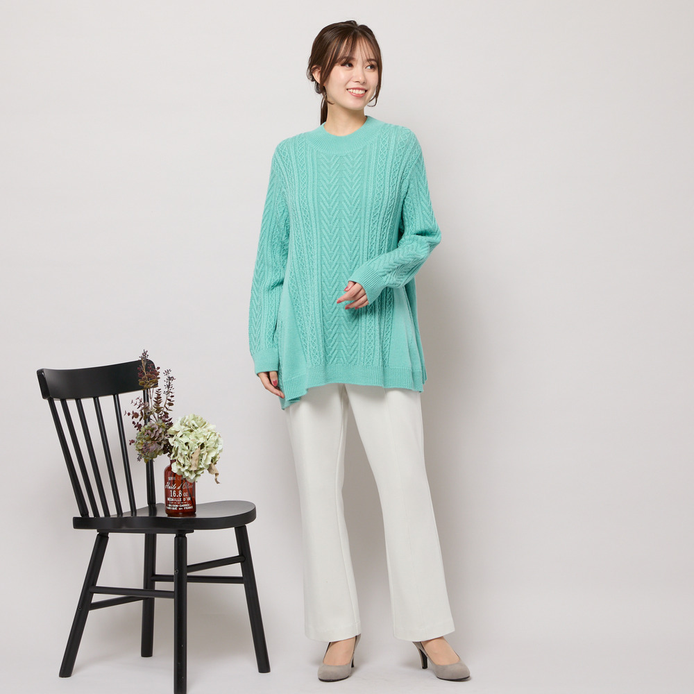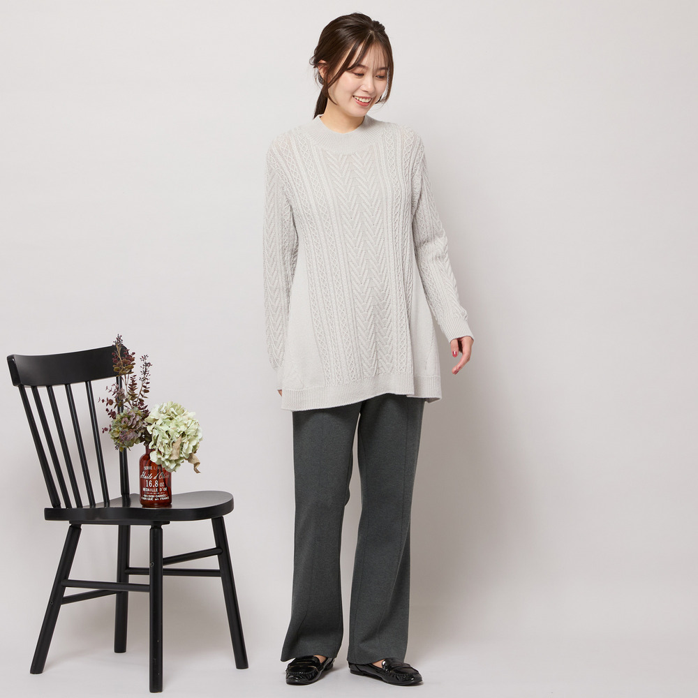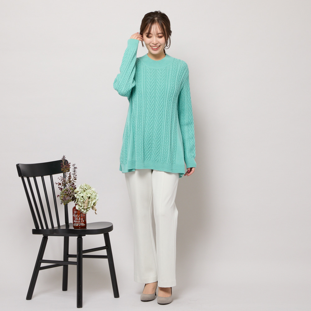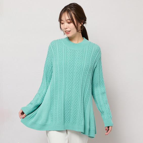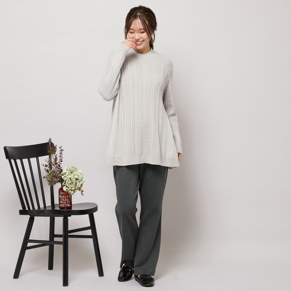 【手洗いOK】ハイネック・フレアーシルエットニット