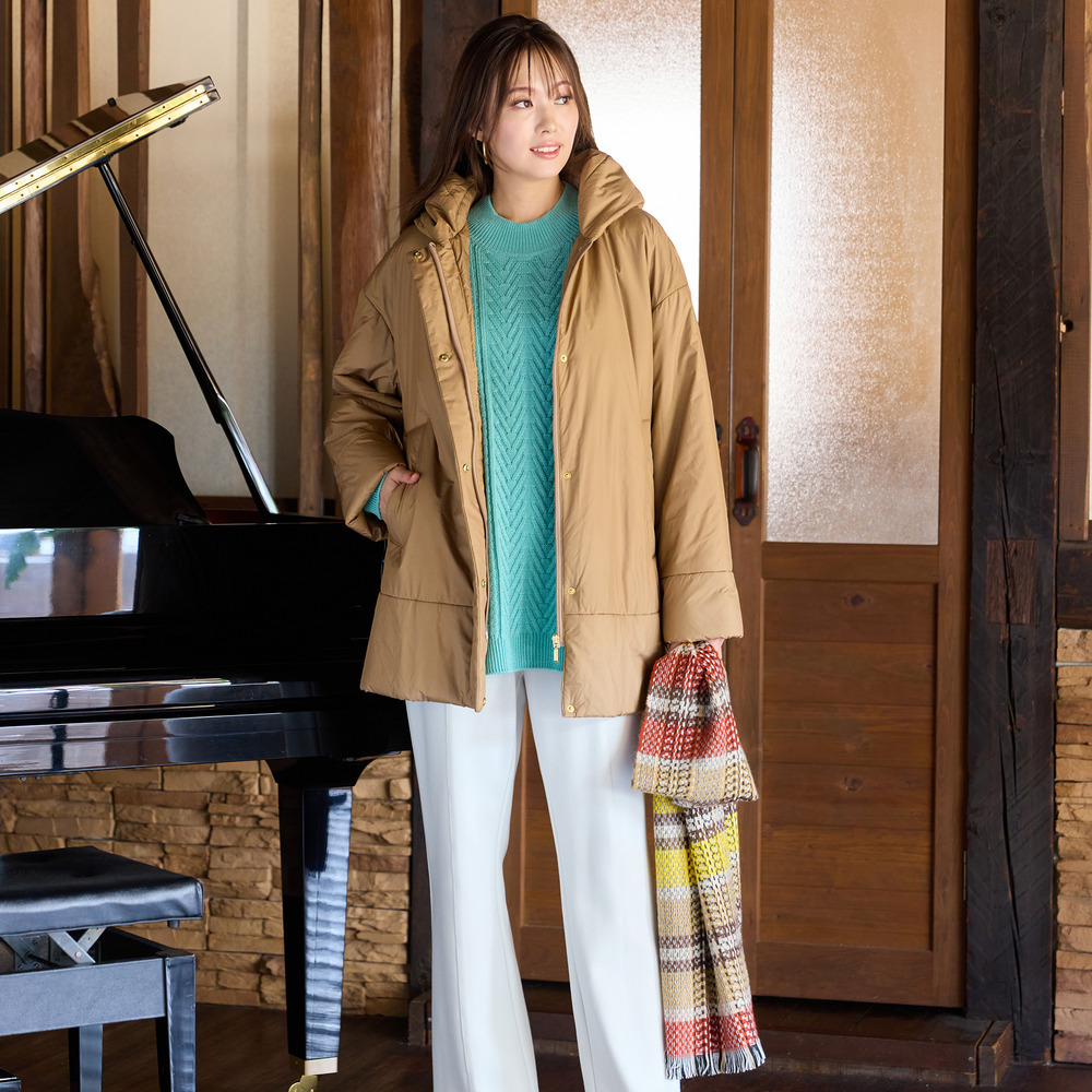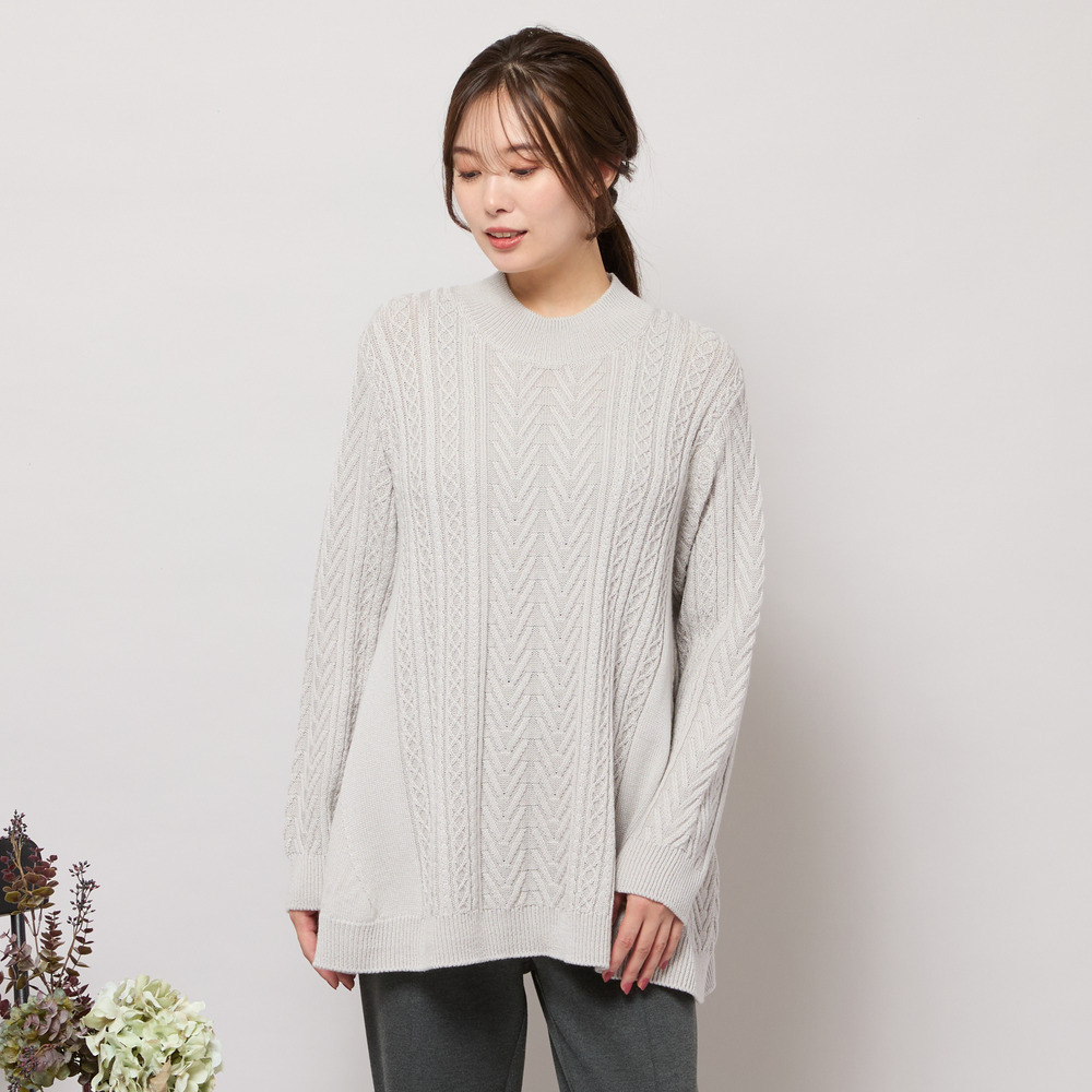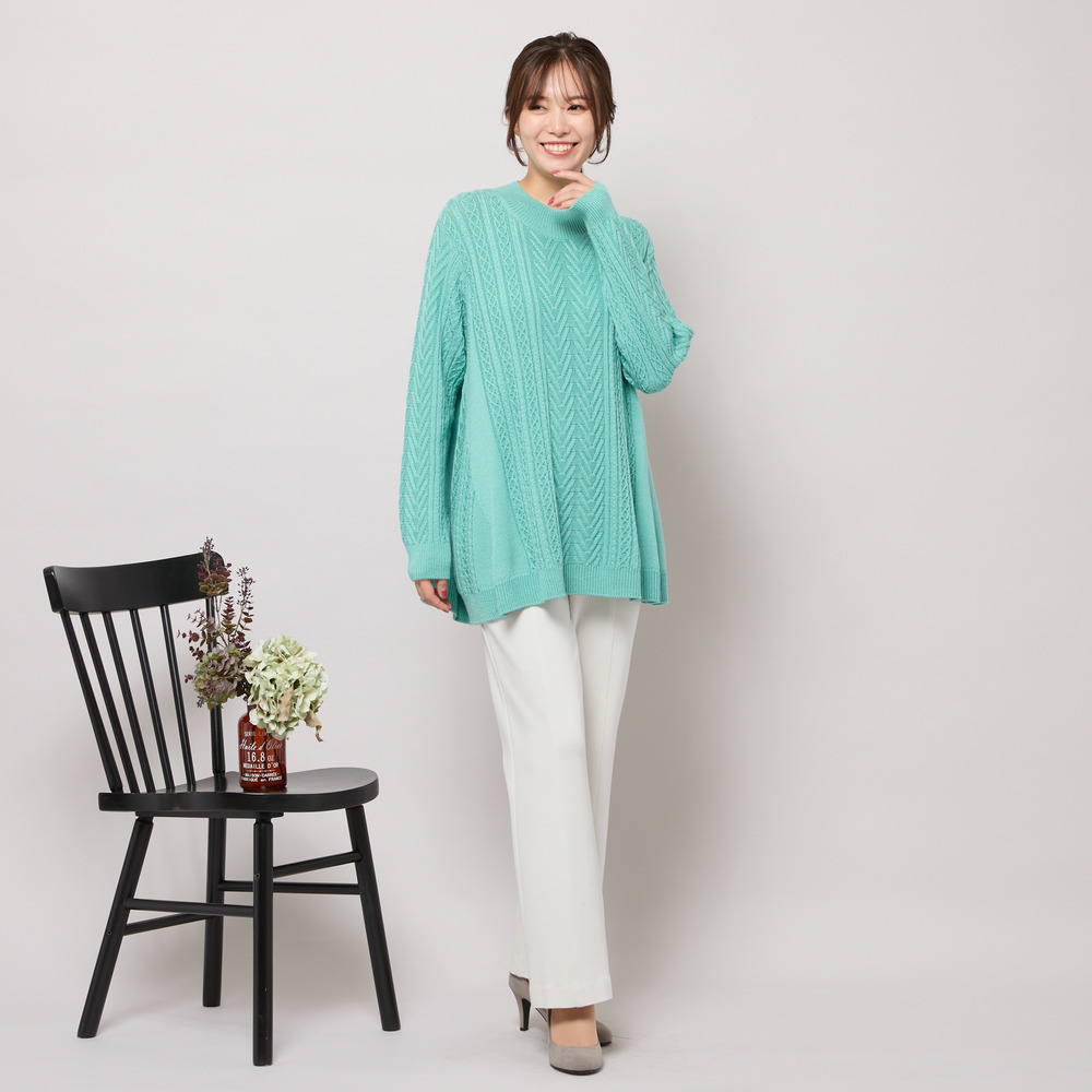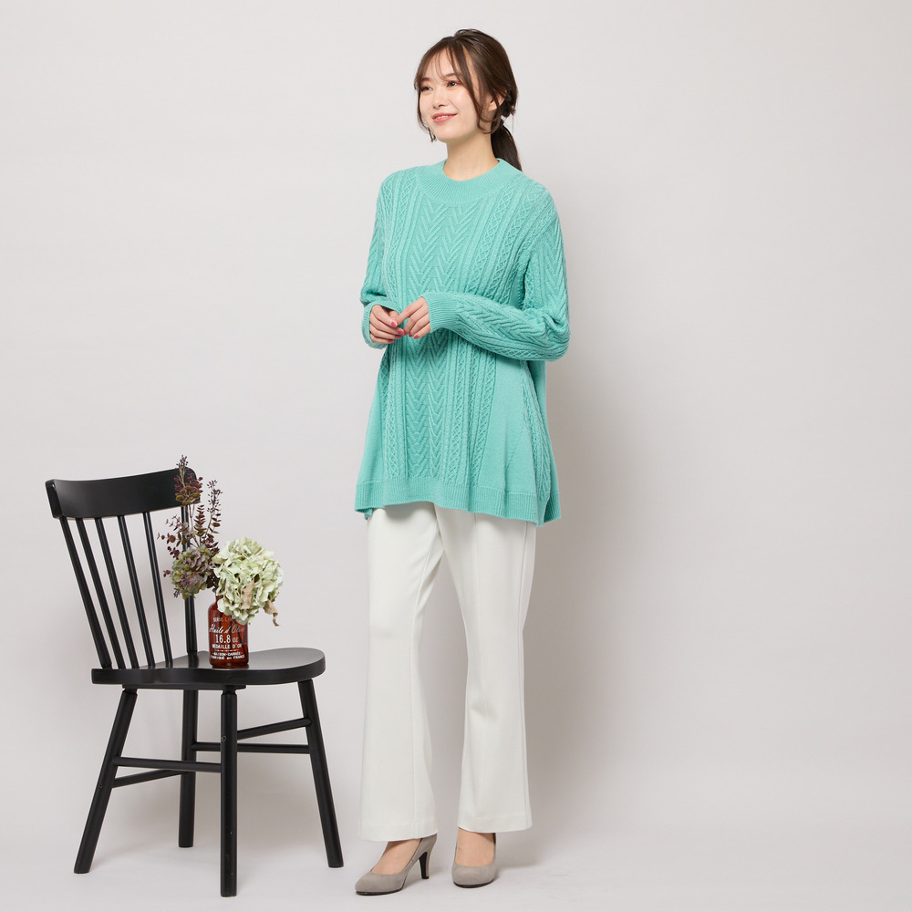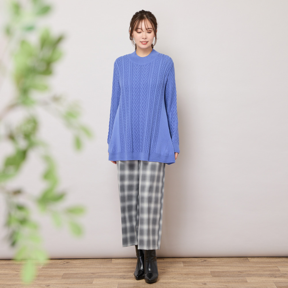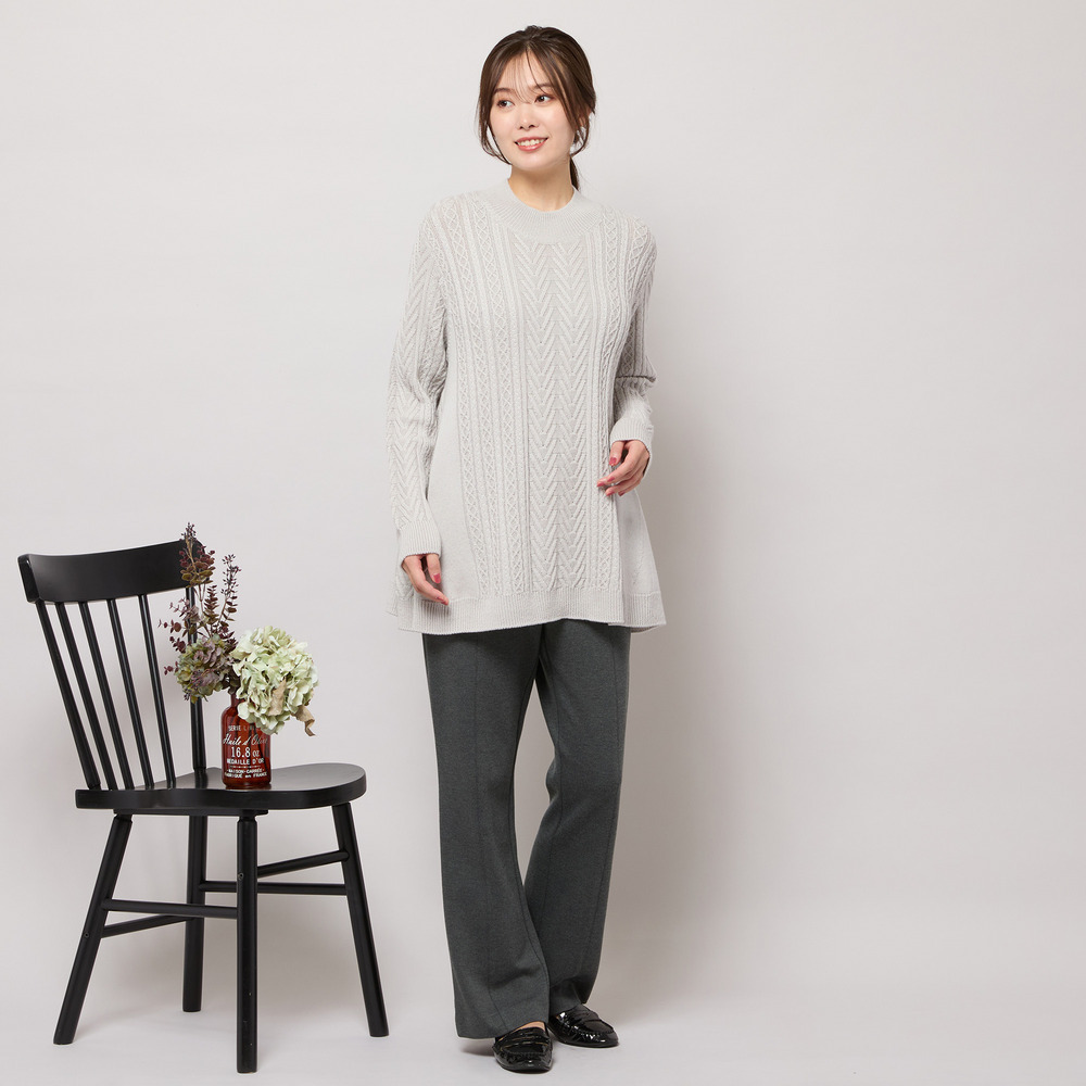 【手洗いOK】ハイネック・フレアーシルエットニット