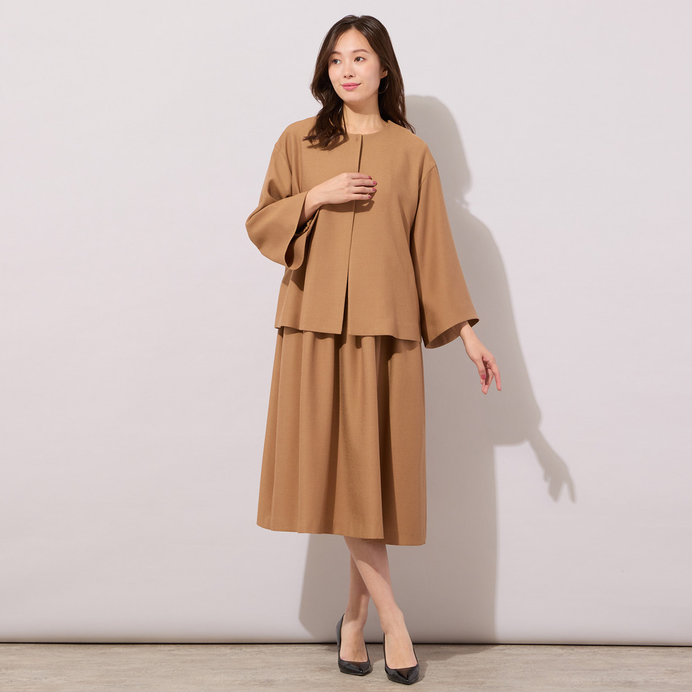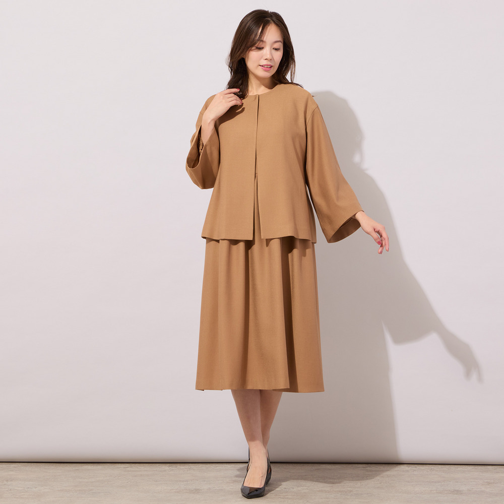 同素材のジャケット[品番:56101-602]と合わせて統一感のあるコーデが◎。