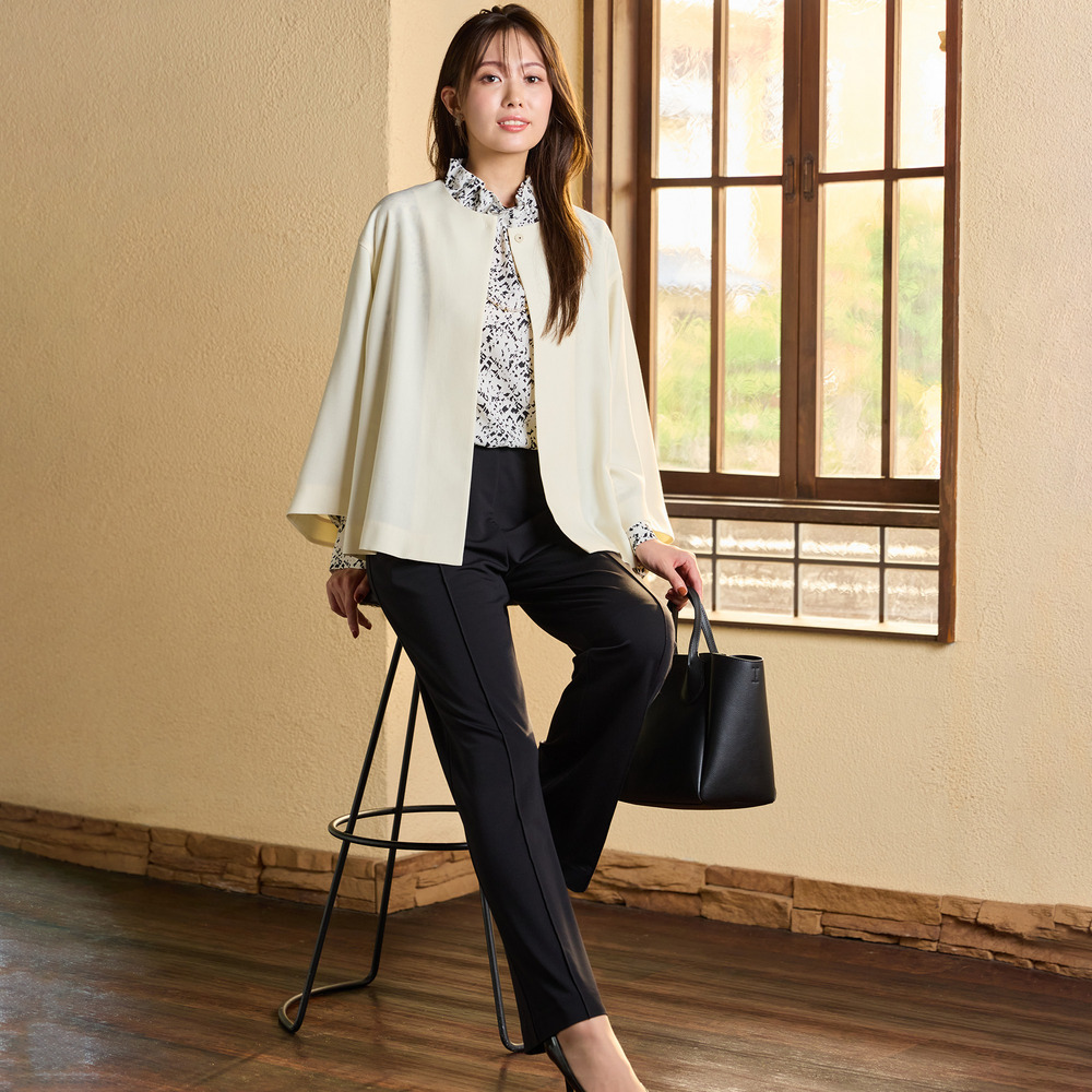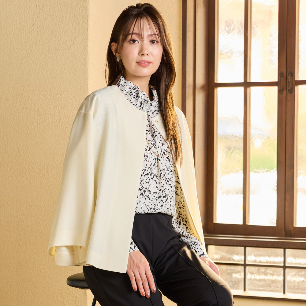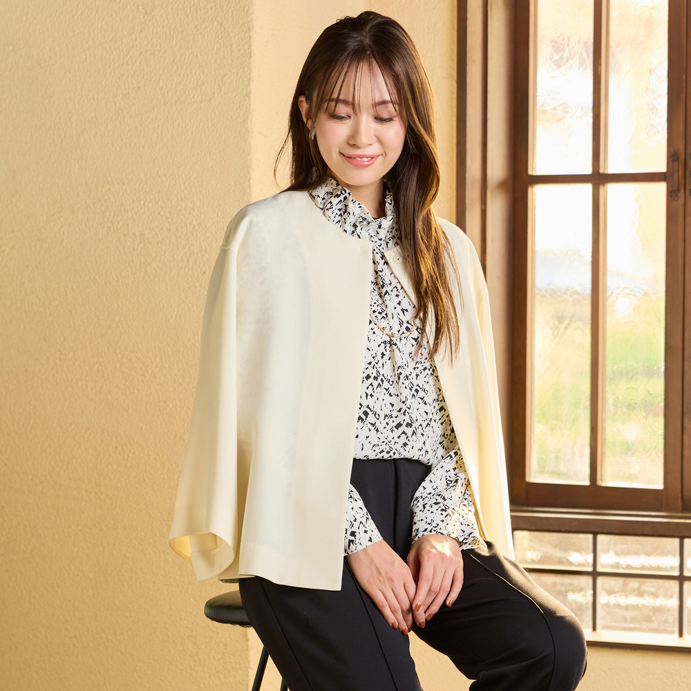 ■ハレの日コーデにもちょうど良い、ノーカラーショートジャケット■
