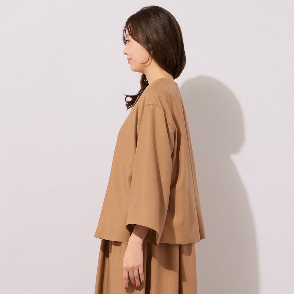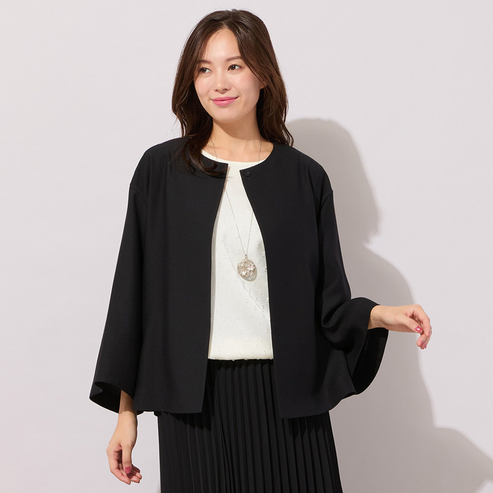 【ハレの日・セットアップ対応】ベルスリーブ・ノーカラーショートジャケット
