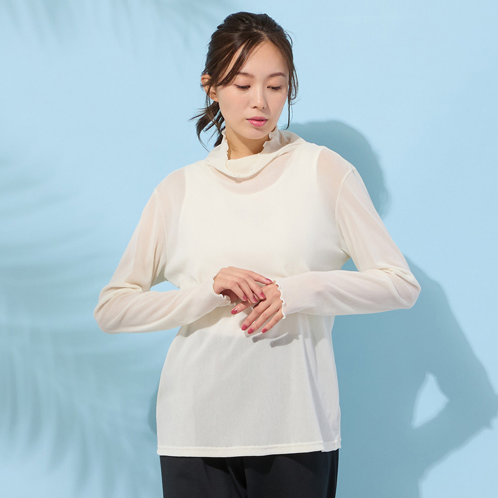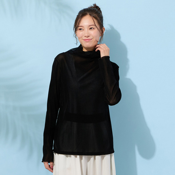 • 【手洗いOK】チュールフロッキー・ボトルネックカットソー1