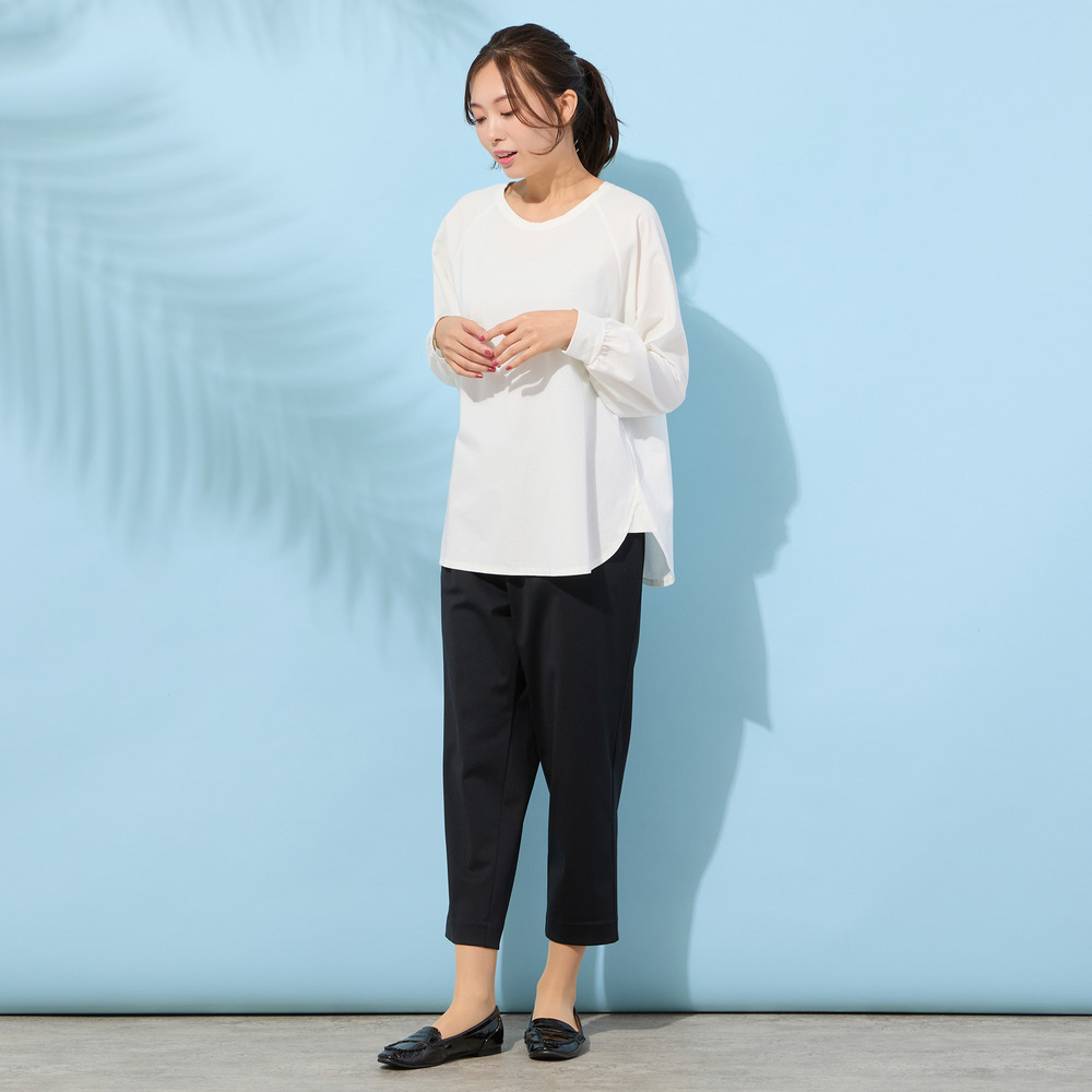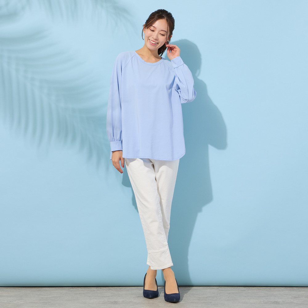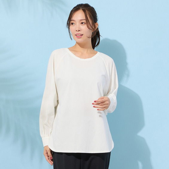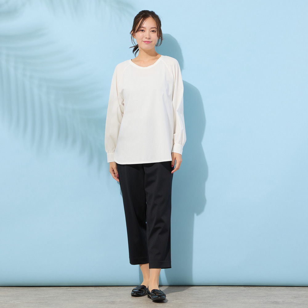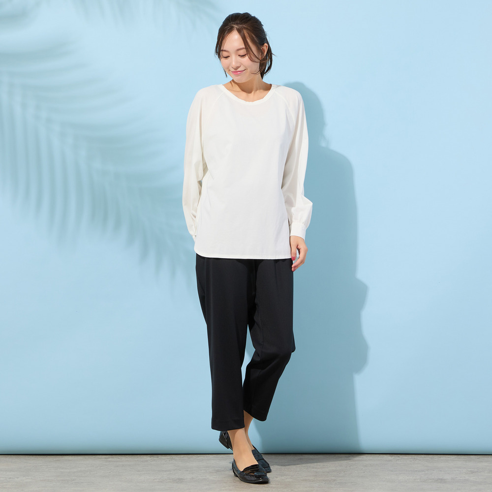 ■オンオフどちらもOKの、きれいめラグランカットソー■