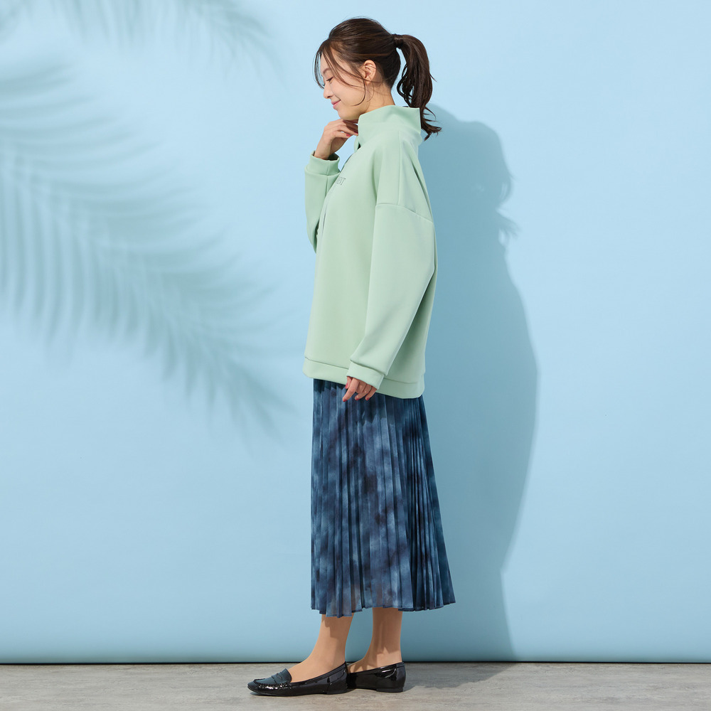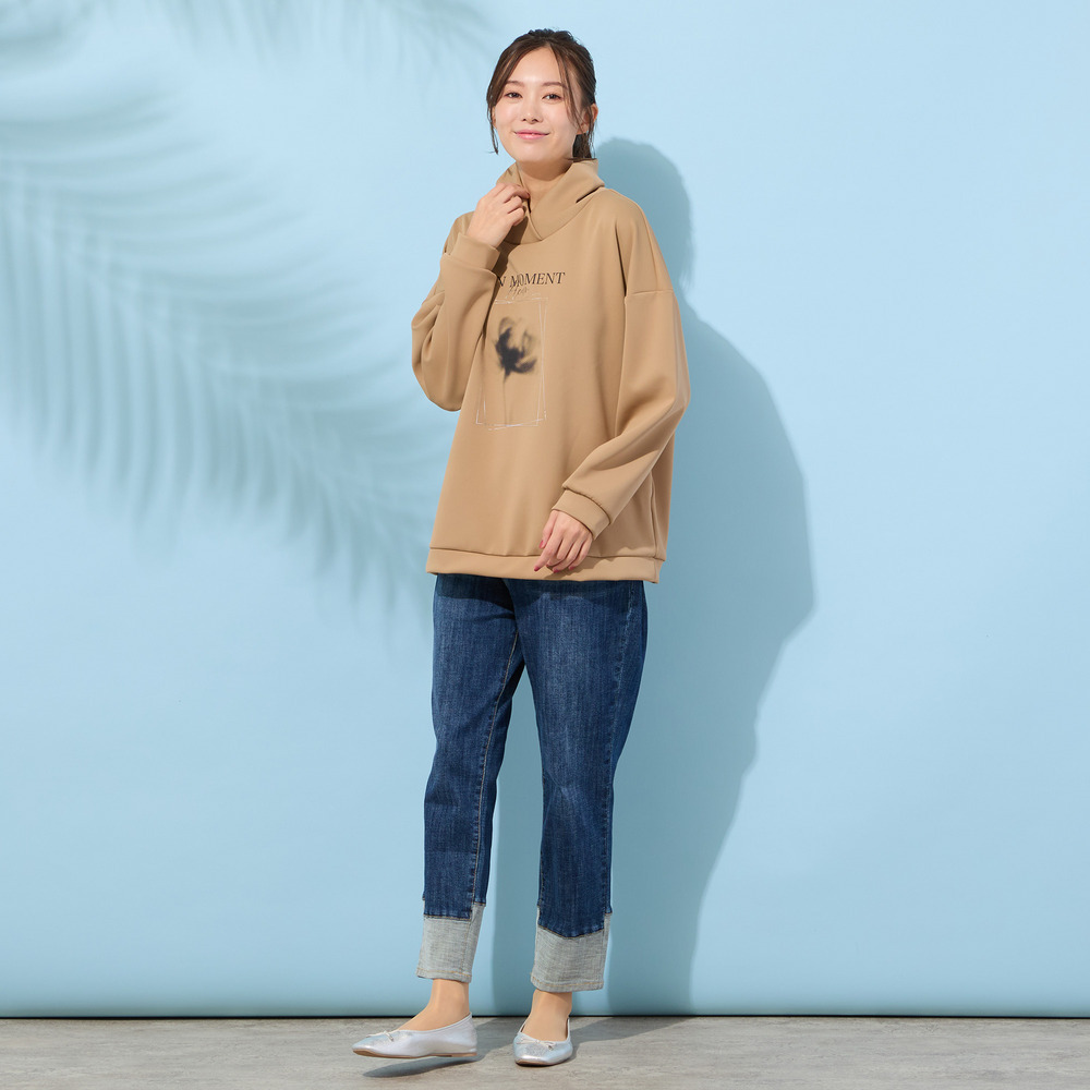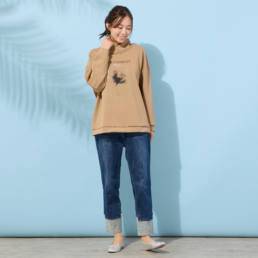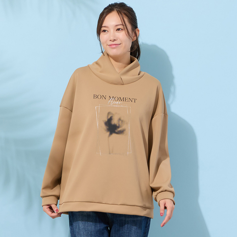 ■胸元のフラワープリントがポイントのハイネックトップ■