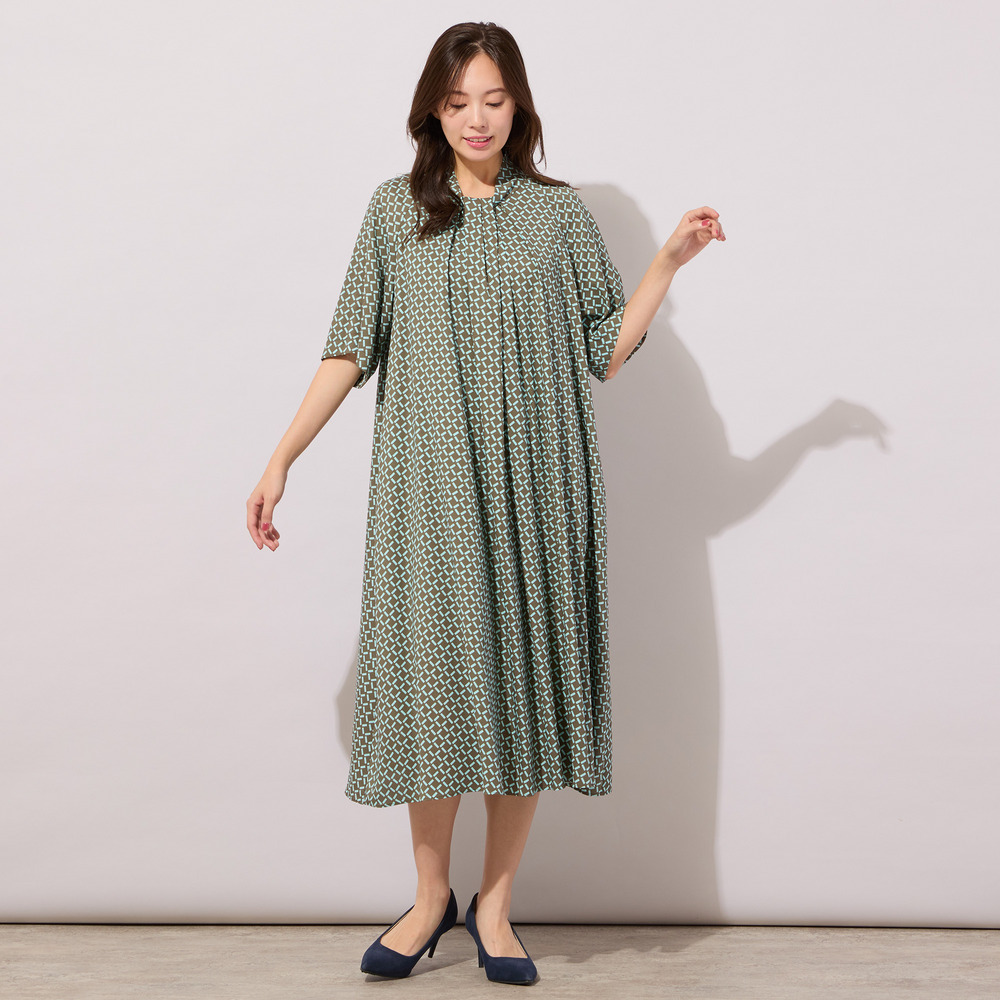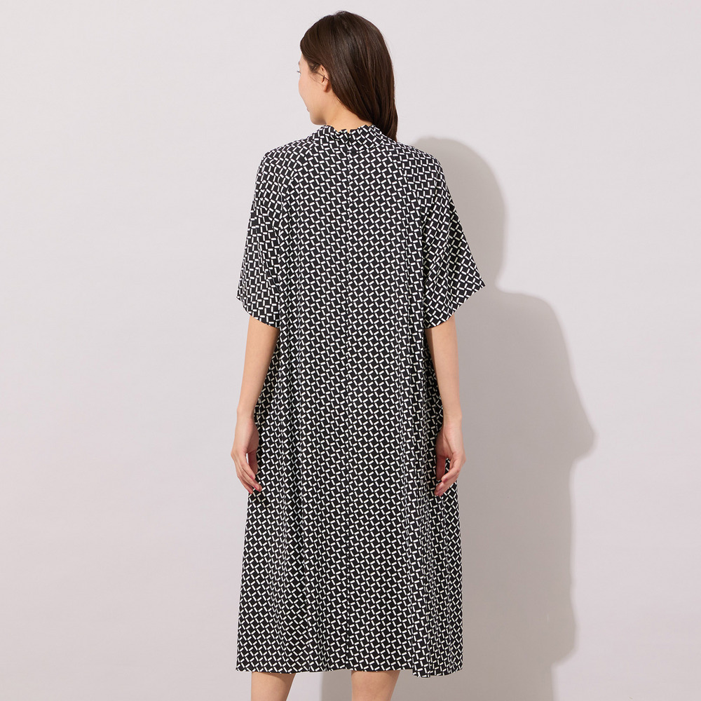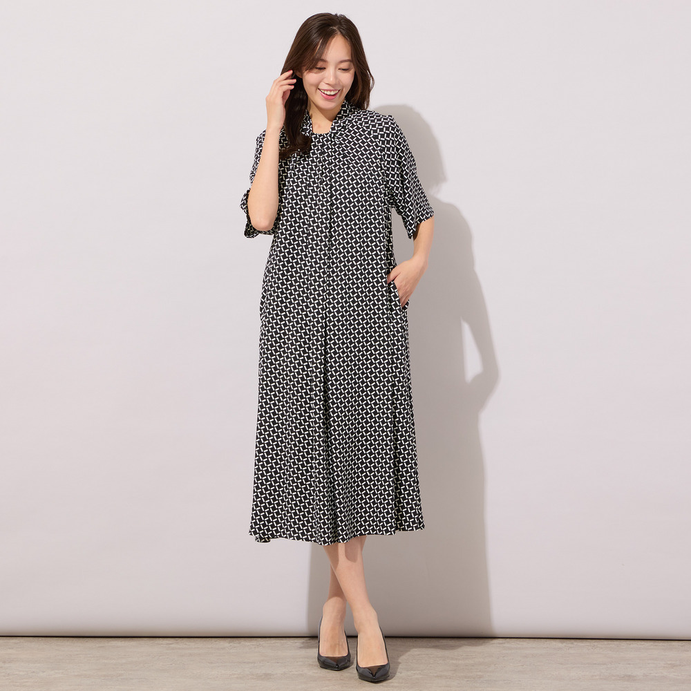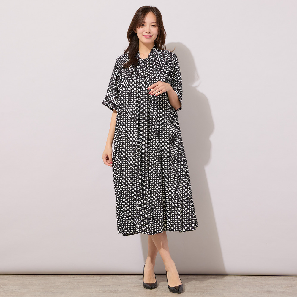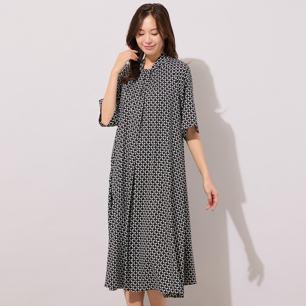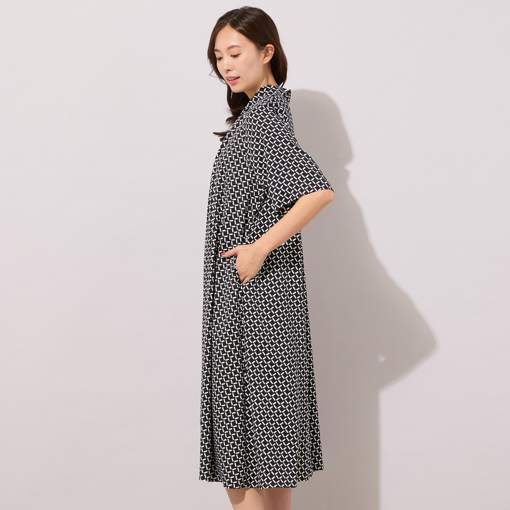 【手洗いOK】幾何柄フロントタックドレス