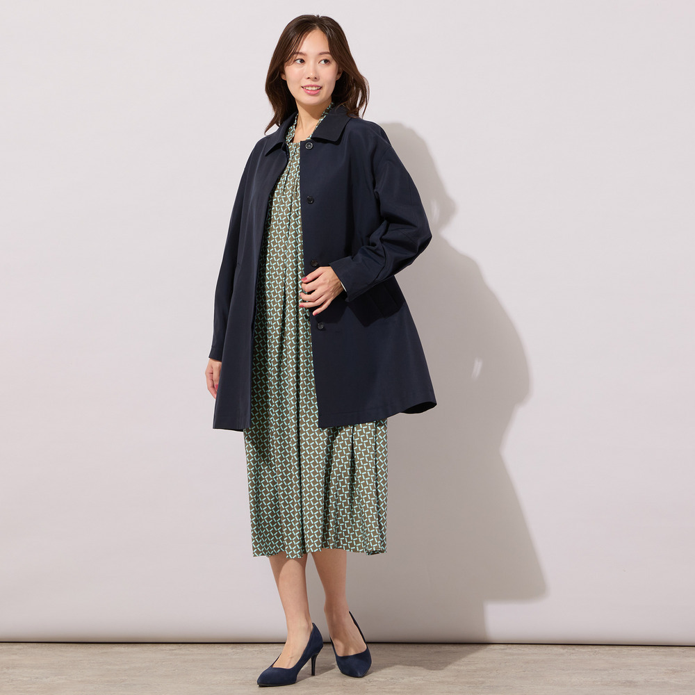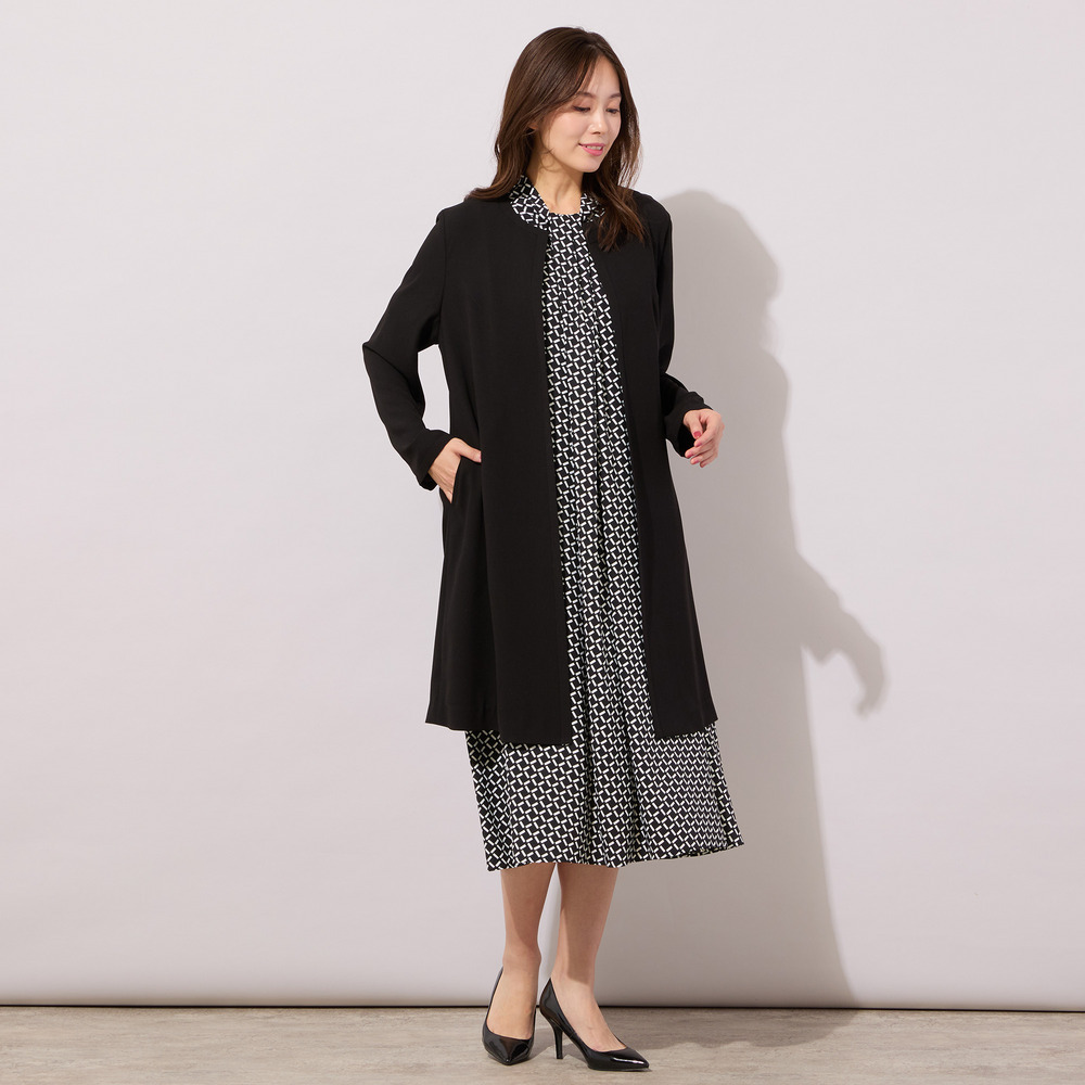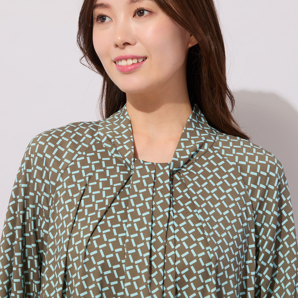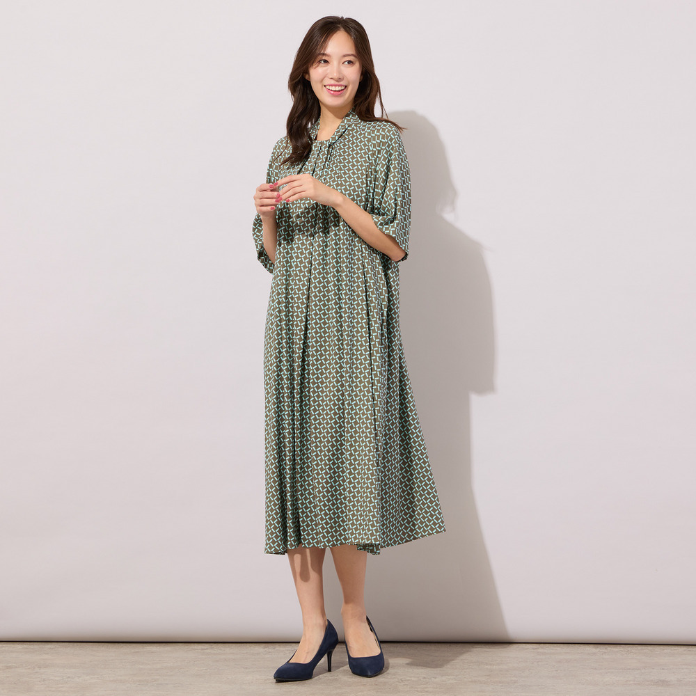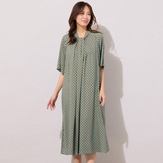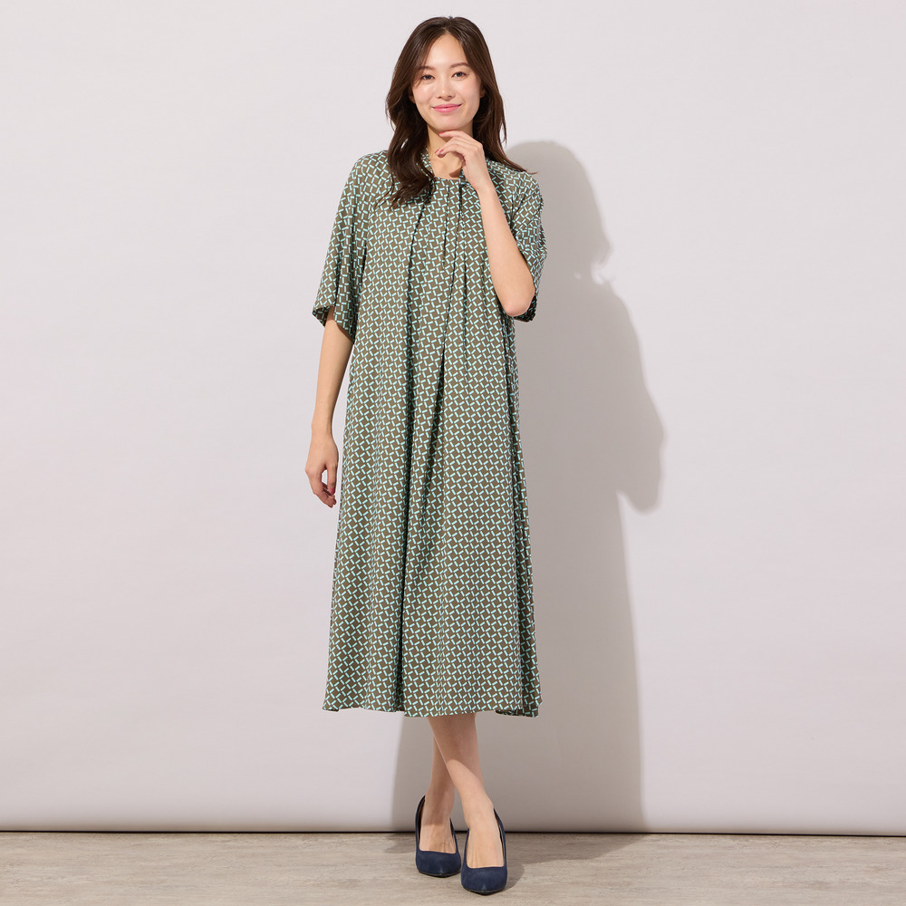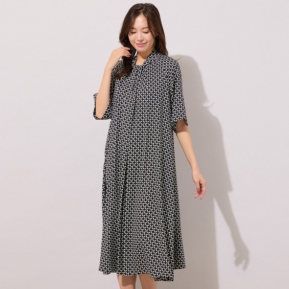 【手洗いOK】幾何柄フロントタックドレス