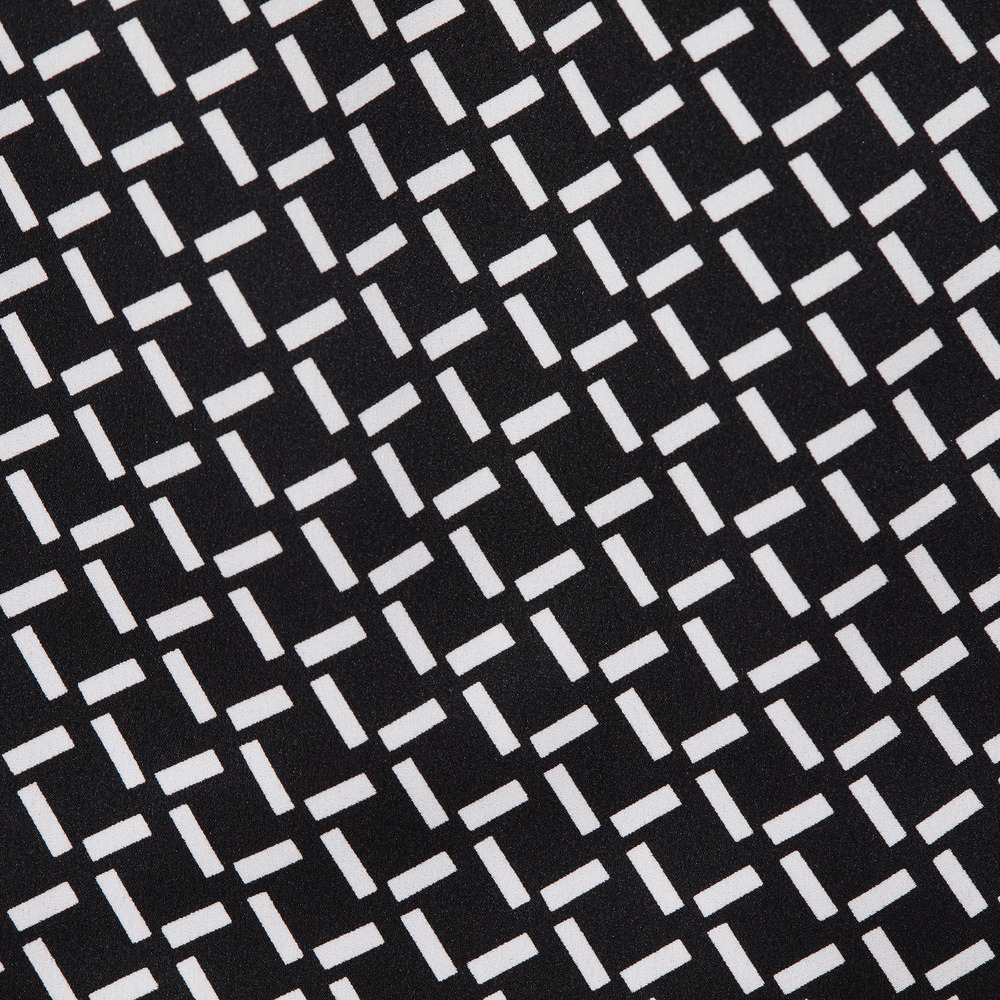 バイカラーの幾何柄が存在感を放つ素材を使用。