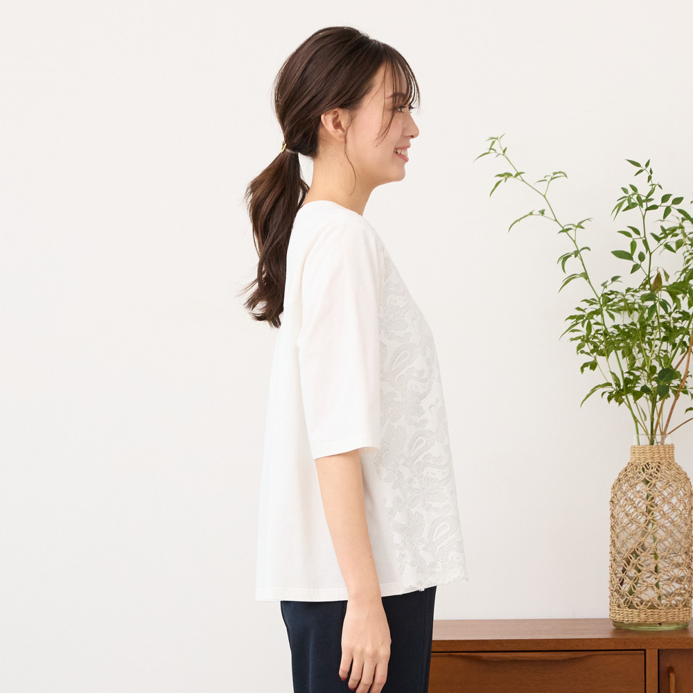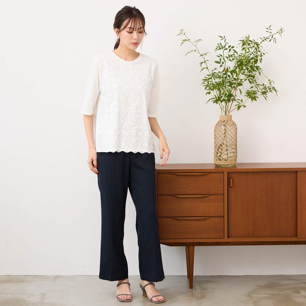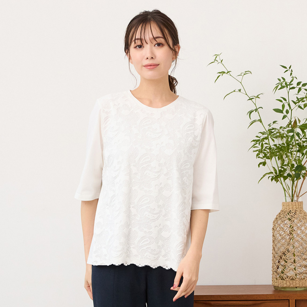 【手洗いOK】フロントレースカットソー