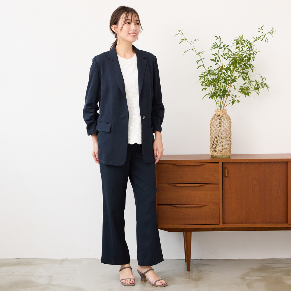 カットソーの着心地の良さで、きちんと見えする1枚です。
