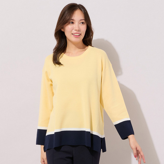 【手洗いOK】トリカラー・サイドスリットニットプルオーバー