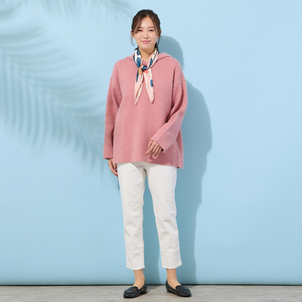 コンパクトなので、結ばずに首にかけて垂らすだけでもこなれた感じでおしゃれ。