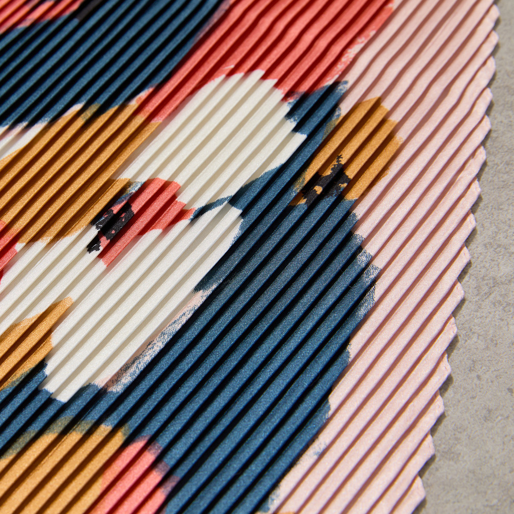 【手洗いOK】マルチカラープリント・プリーツストール
