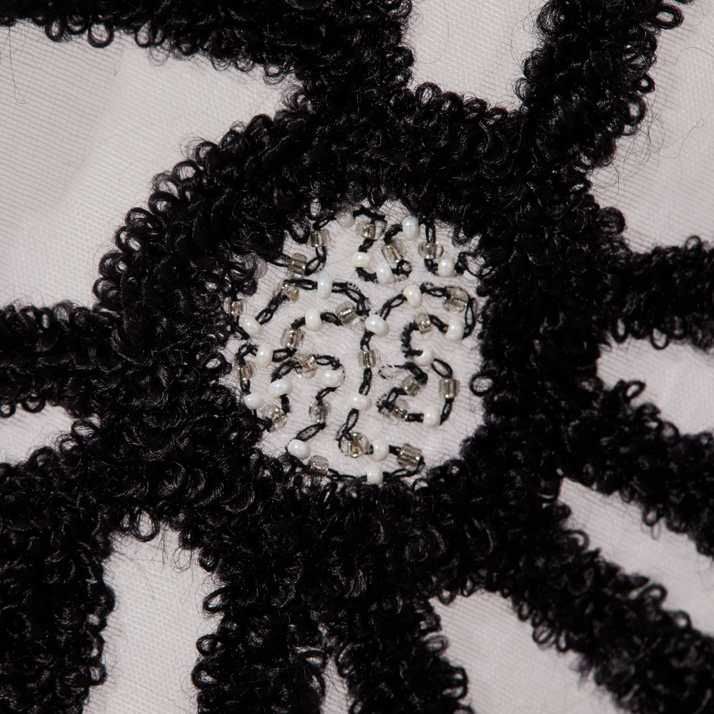 タオルの表面の様な、モコモコと立体的なサガラ刺繍で描かれた、ユニークな模様のモチーフのストール。