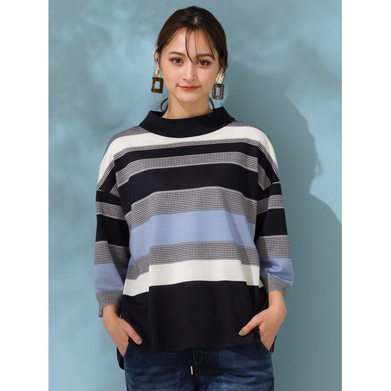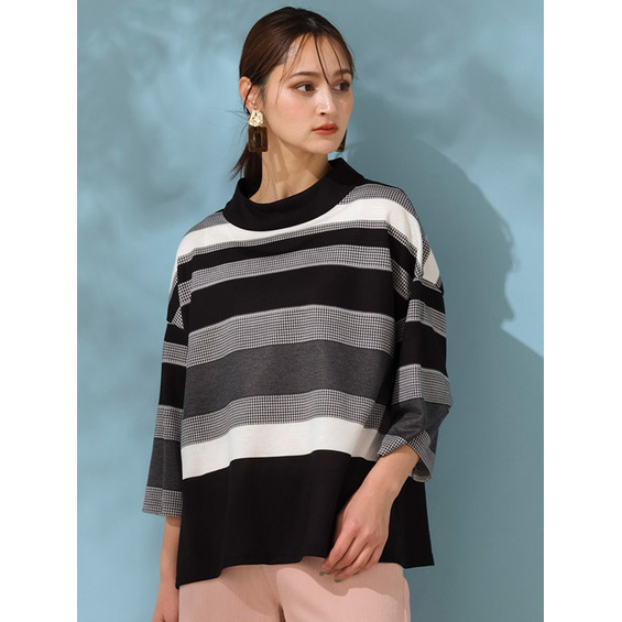 ■千鳥&ボーダーを大胆に切り替えた、タートルネックプルオーバー■