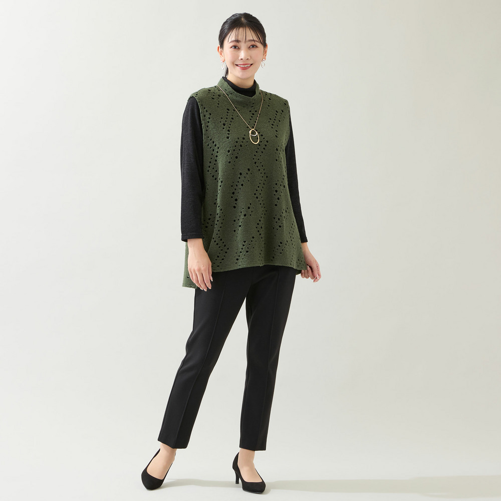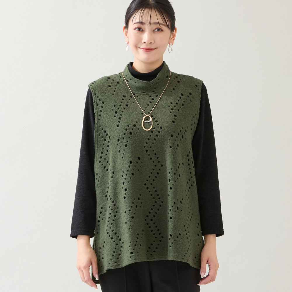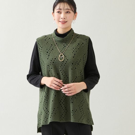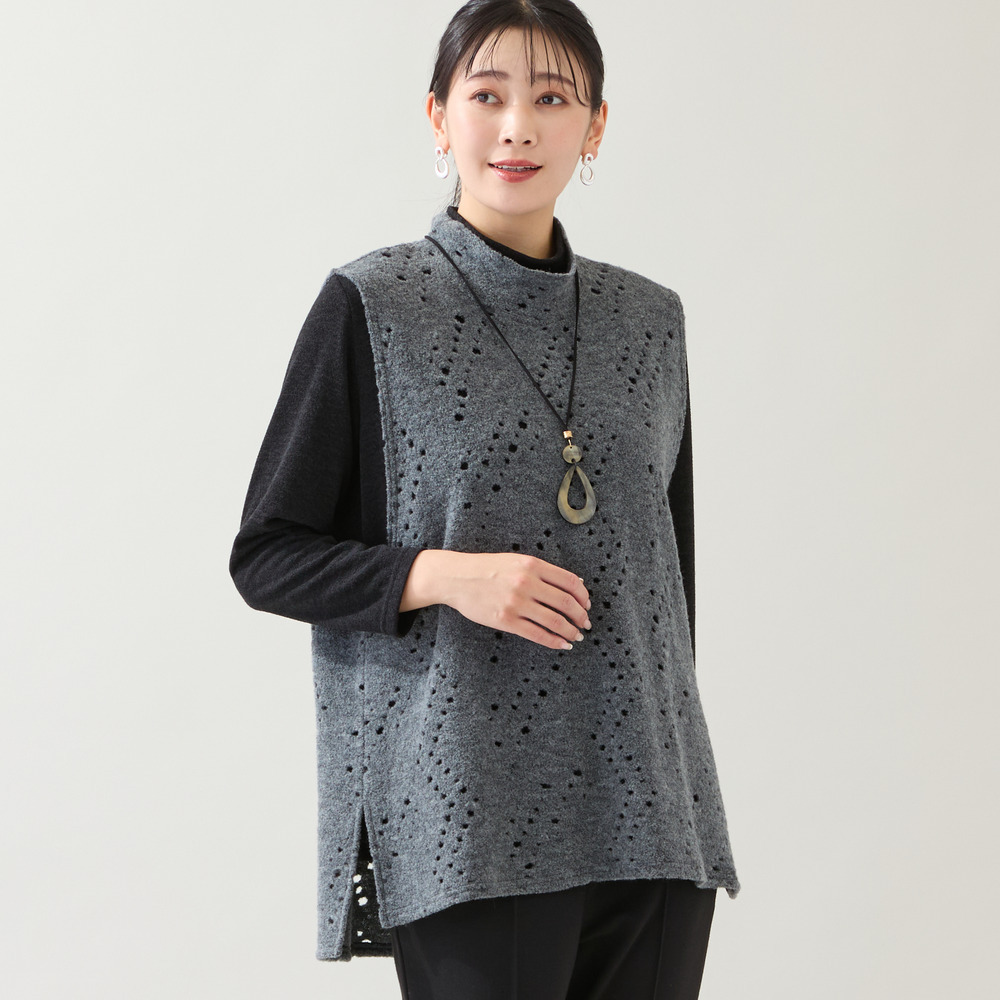 合わせるインナーによって、ホールから色が透けて見える楽しいデザインです。
