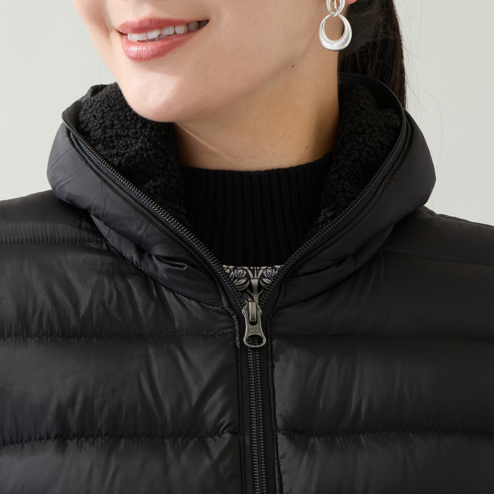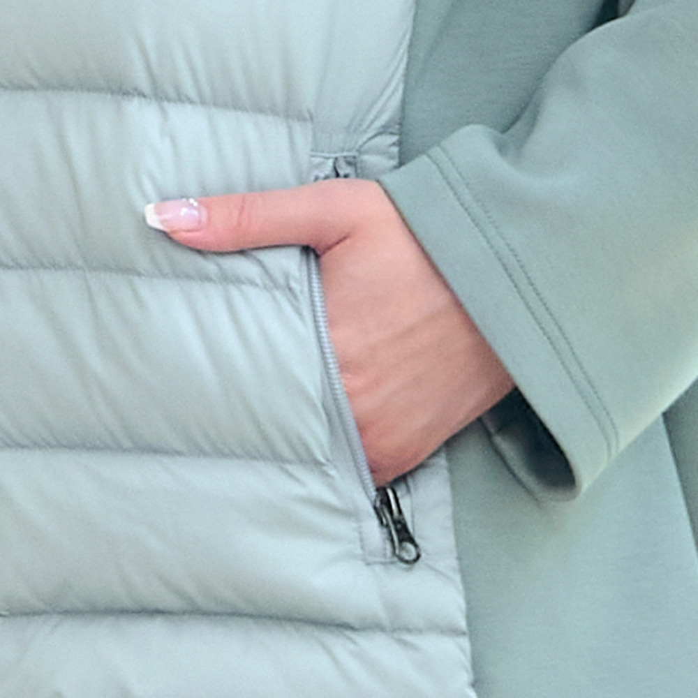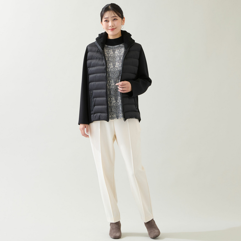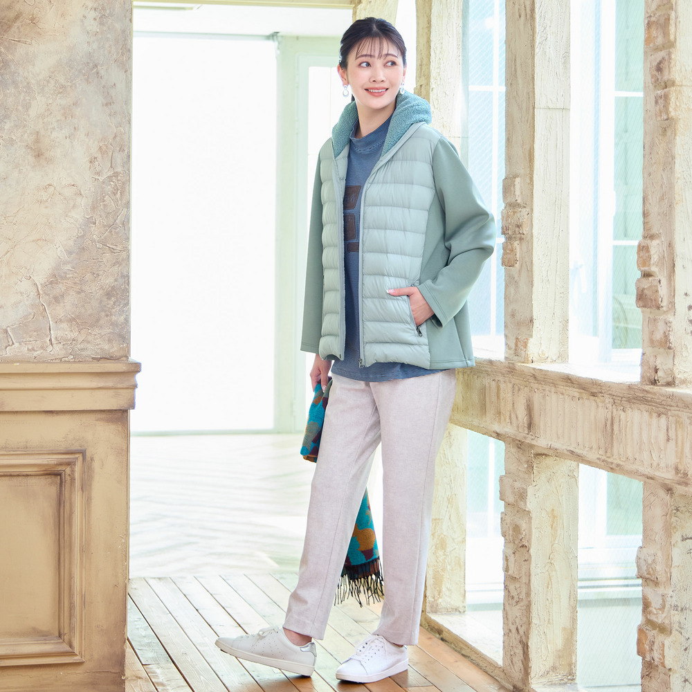 身頃のキルト部分はダウン入りで暖かく、脇や袖が伸縮するので動きやすさは◎。