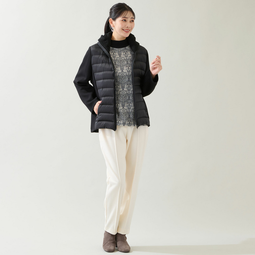 素材 | 布帛部分 ナイロン:100 詰めもの ダウン:90 フェザー:10 ニット部分 ポリエステル:54 レーヨン:41 ポリウレタン:5 ボア部分 ポリエステル:100 |