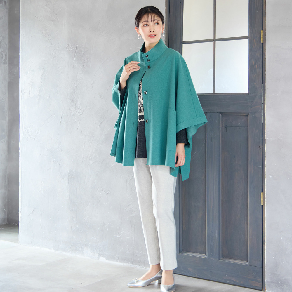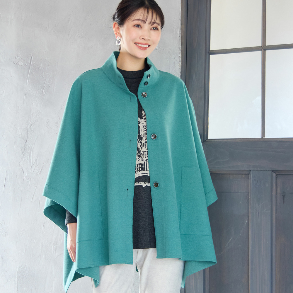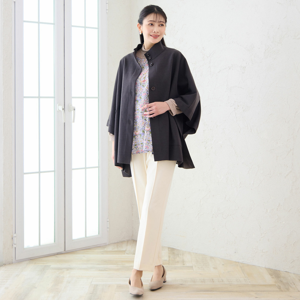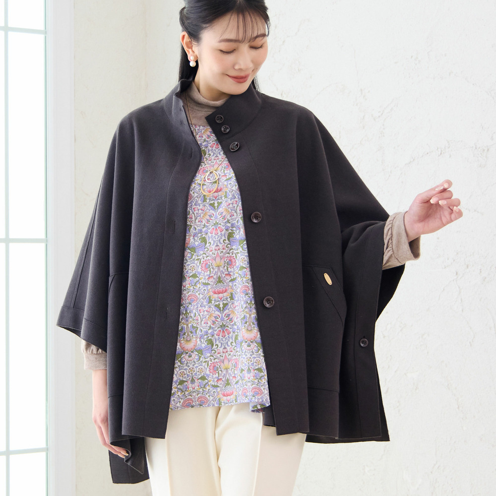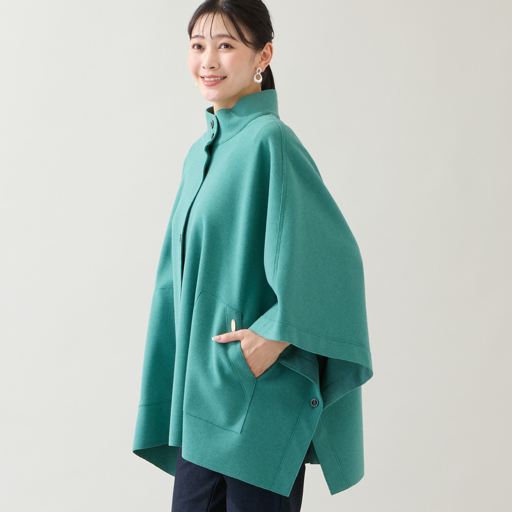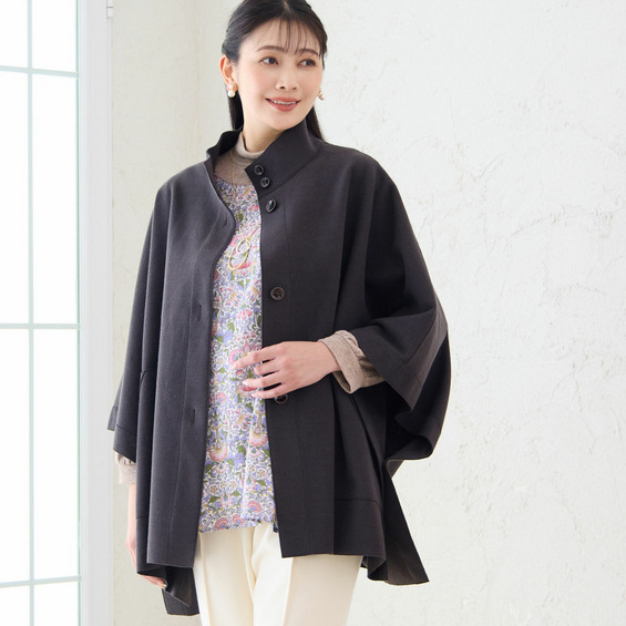 しなやかで温もり感のある風合いが特徴の人気素材で、トレンドライクな着こなしが叶うケープジャケットを仕立てました。