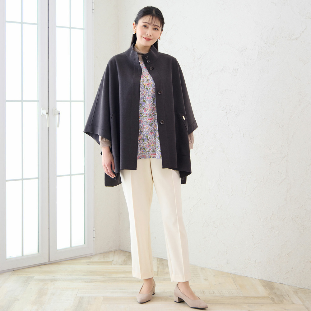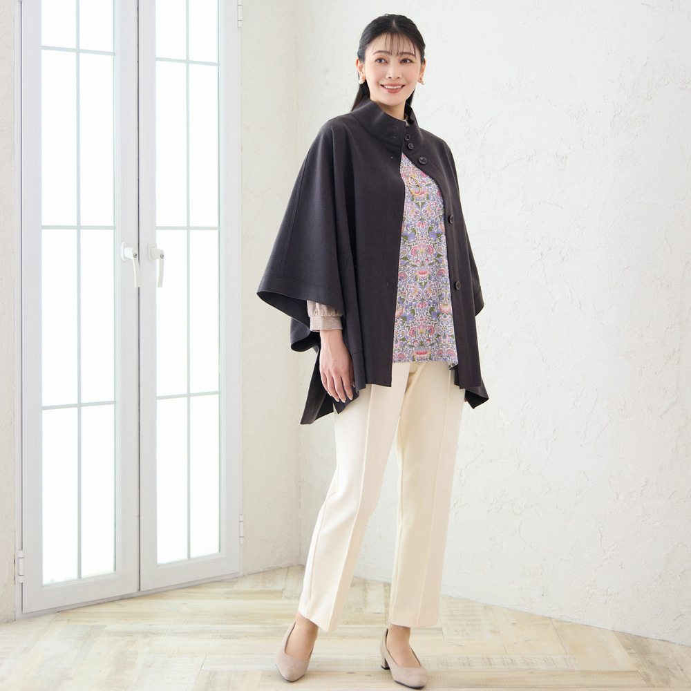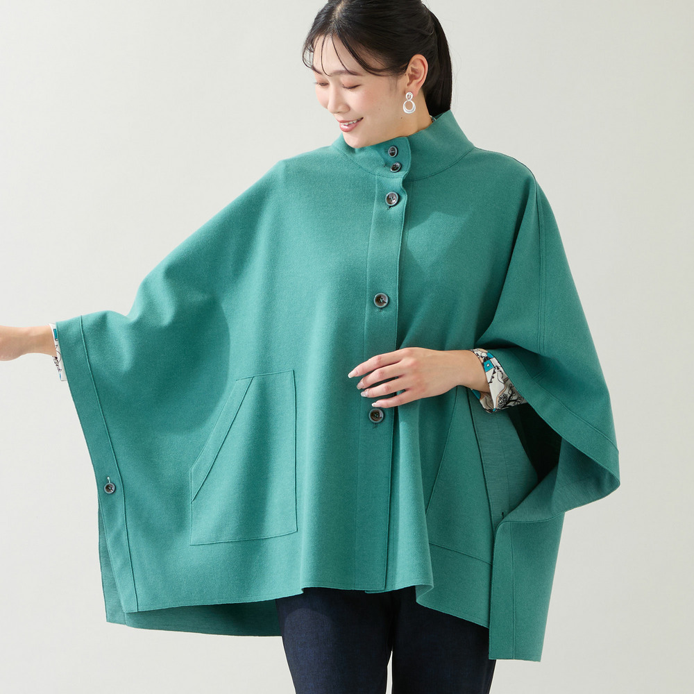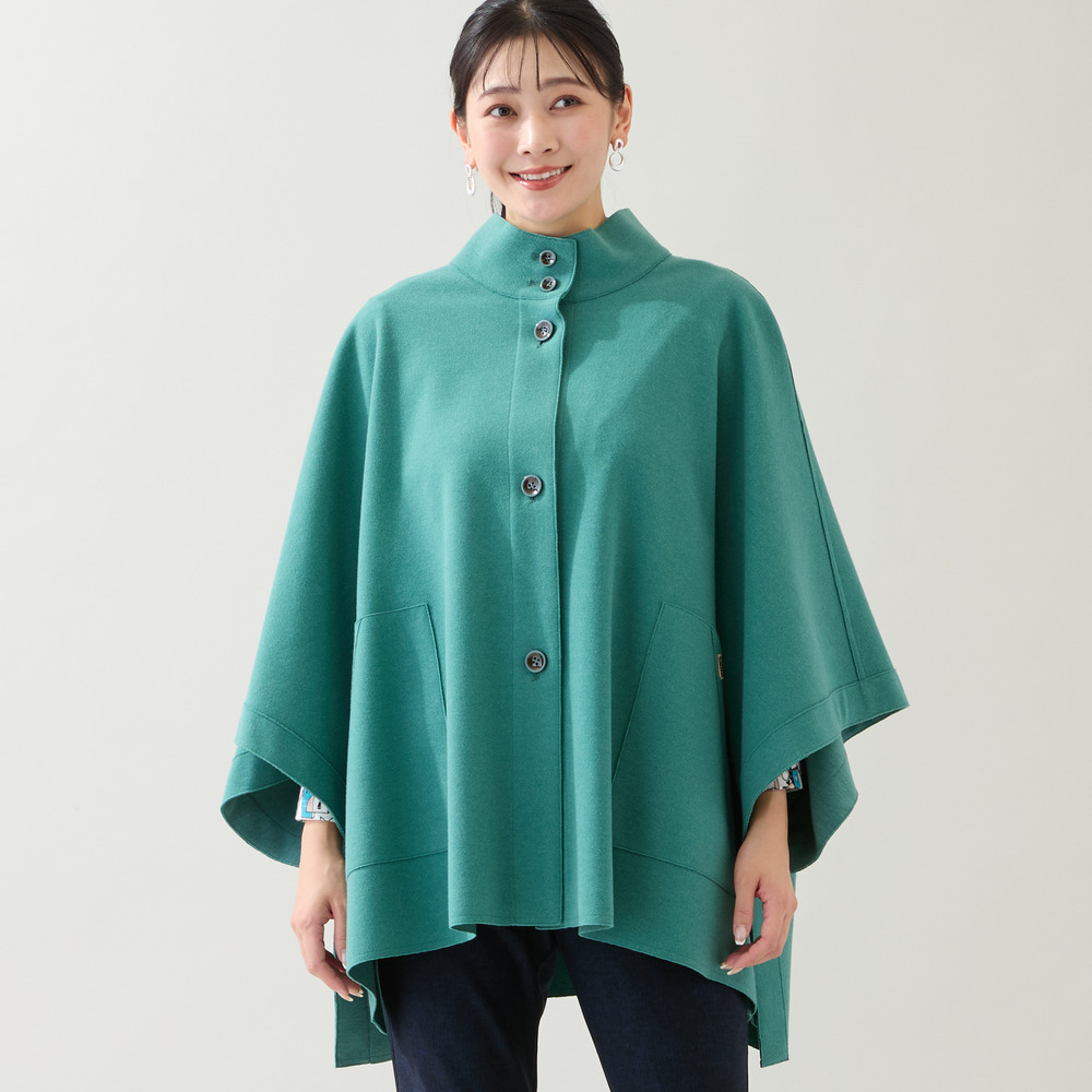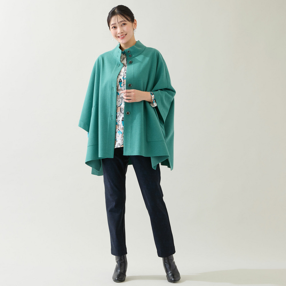 しなやかで温もり感のある風合いが特徴の人気素材で、トレンドライクな着こなしが叶うケープジャケットを仕立てました。
