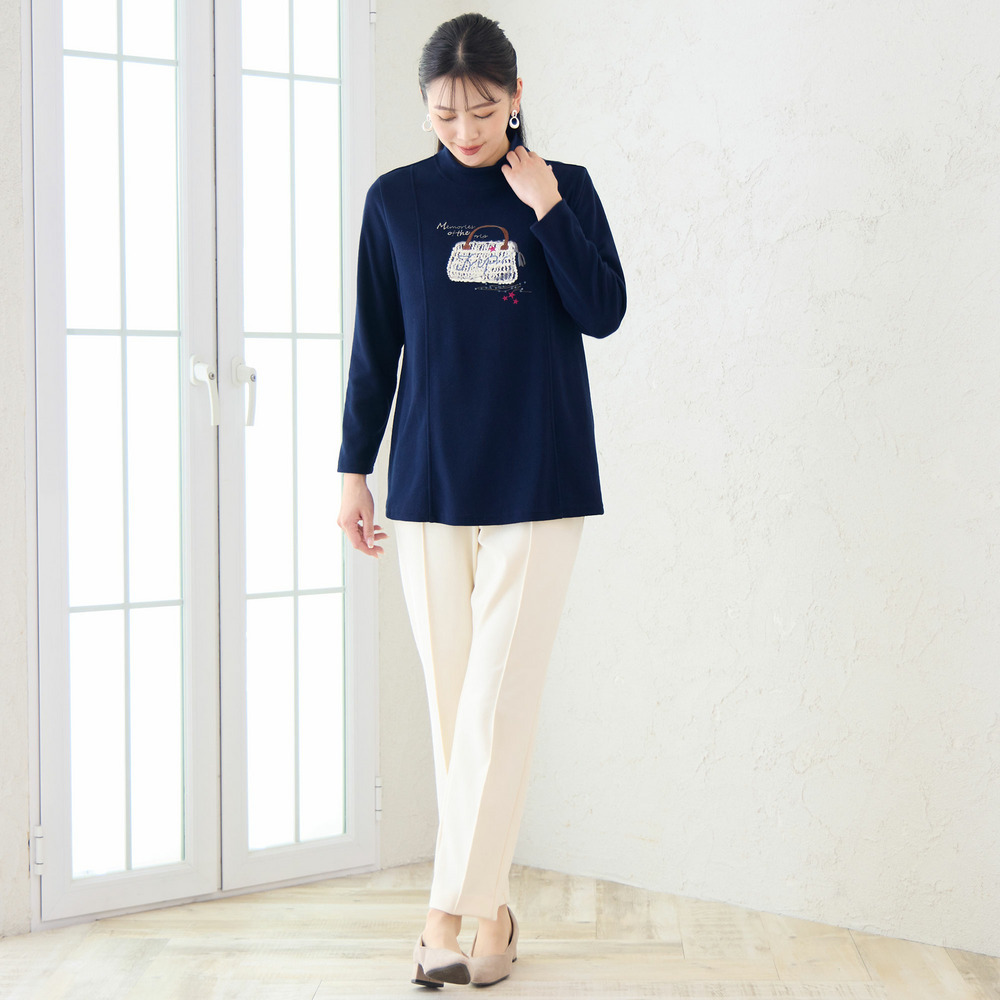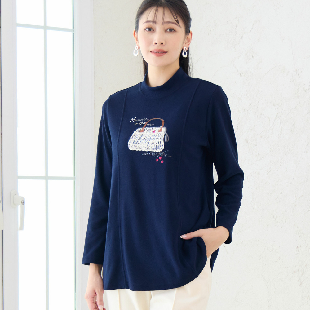 【あったか素材・洗える・日本製・3L/4Lサイズあり】Bag刺繍カットソー