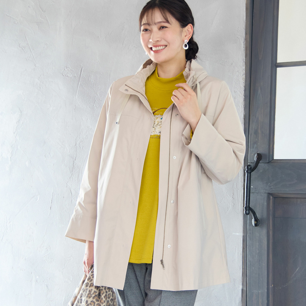 裾にフレアをだしたやや長めの着丈でお腹周りをしっかりカバー。