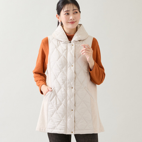 ◆異素材使いがお洒落な人気のキルトベスト◆