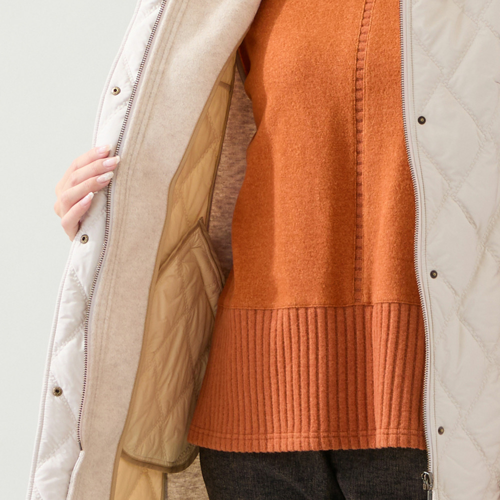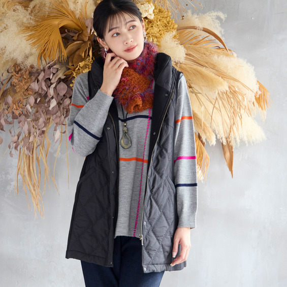 ロング丈なので腰周りまで暖かく、気になるヒップラインをしっかりとカバーします。