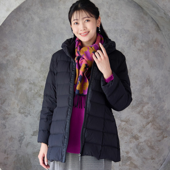 カラーインナーや柄マフラーを合わせると華やかな印象でお楽しみいただけます。