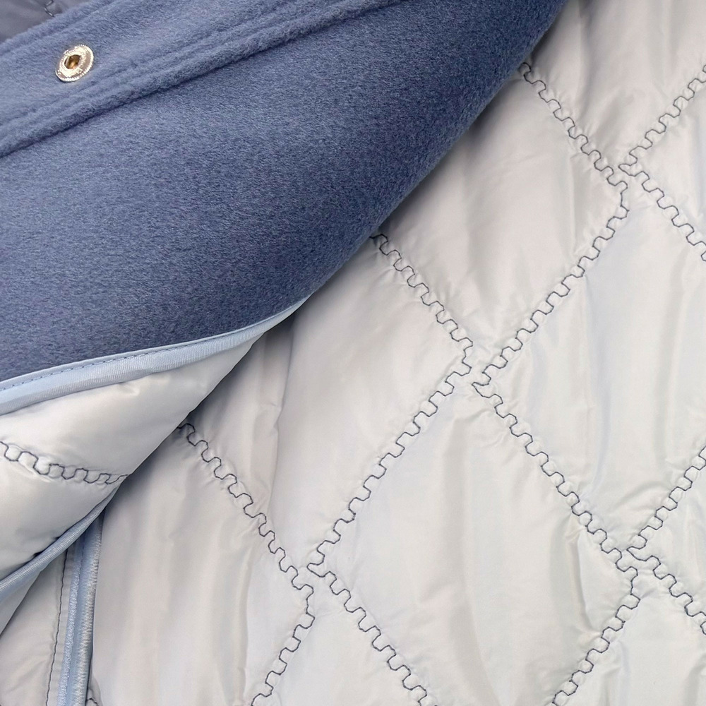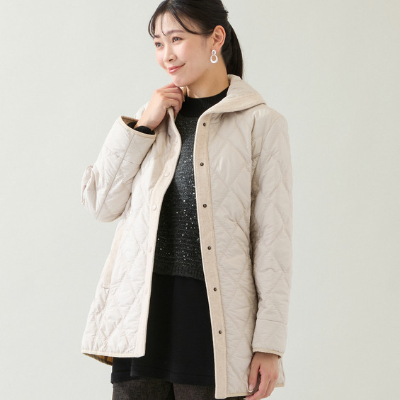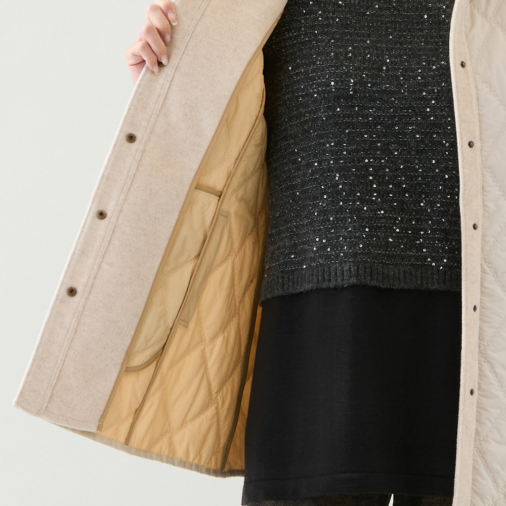 柔らかくマットな質感のタフタに薄中綿を挟んでキルトをかけたコート。